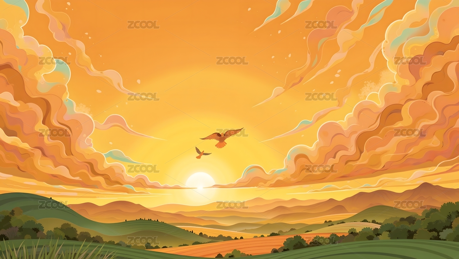 AIGCFG,中国风,插画,中式风格,国潮风,国风,风景,山水