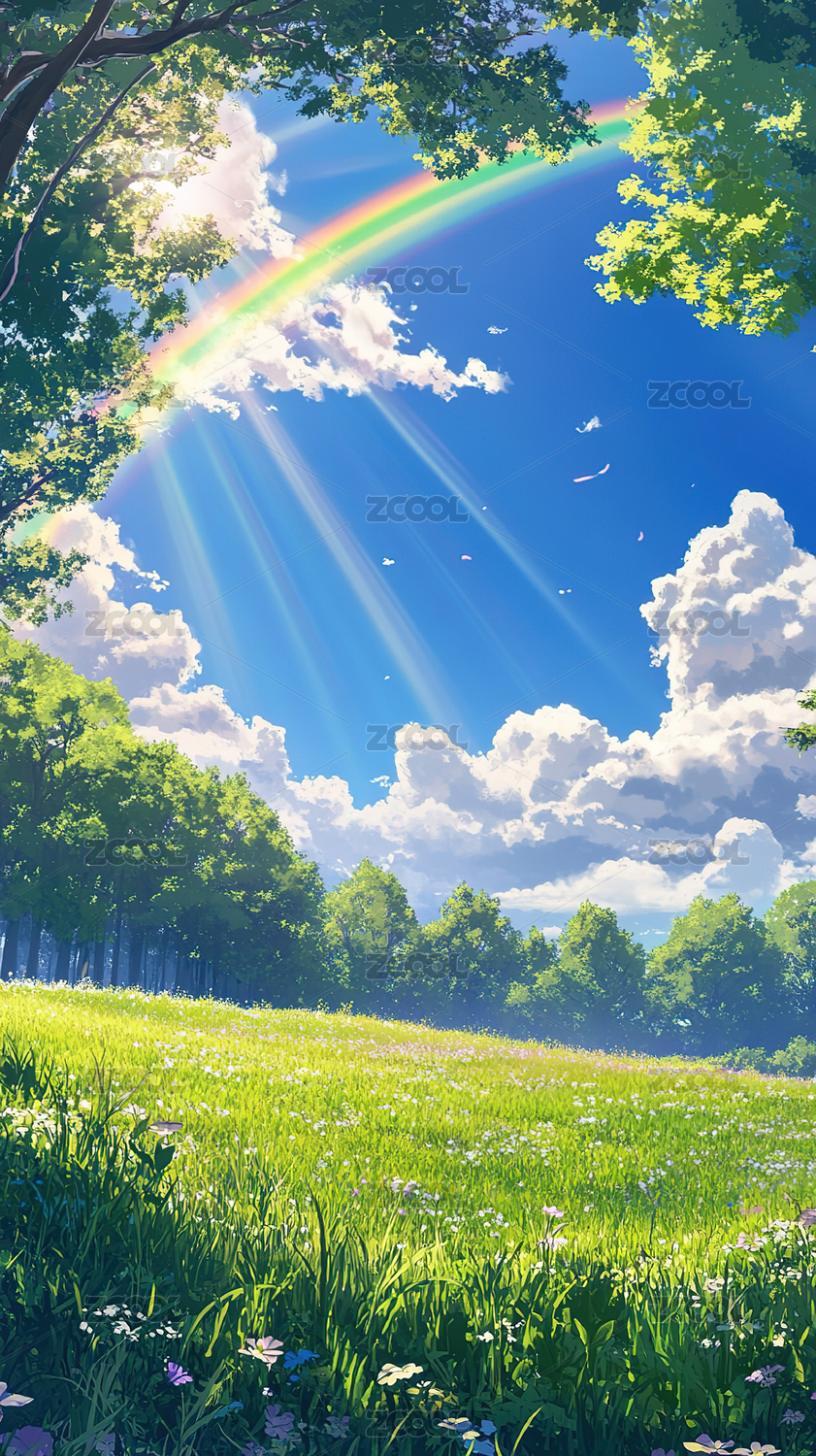 AIGCFG01,阳光,草地,风景,插画