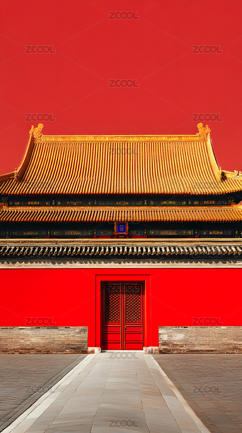 简约红色背景下的北京故宫