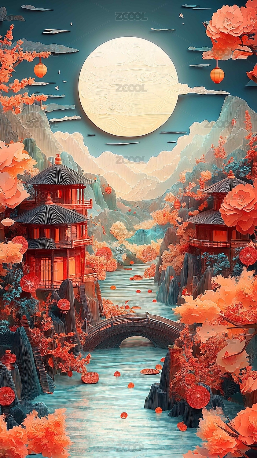 中秋节,节日,月亮,背景,壁纸,风景,兔子