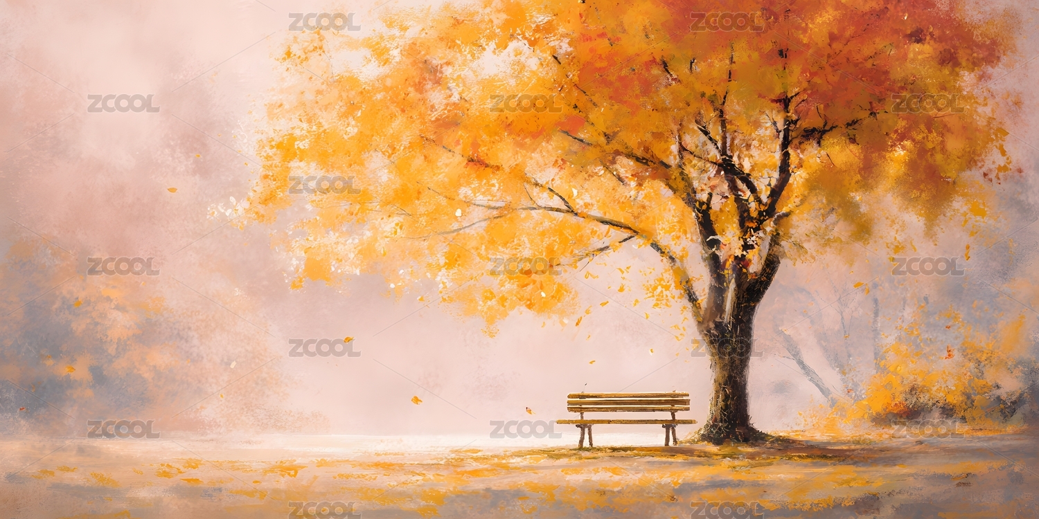 秋日落叶长椅