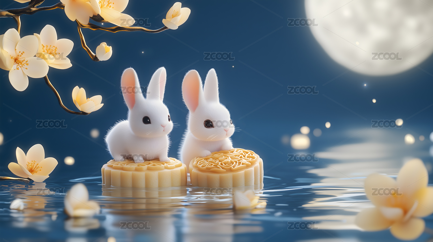 中秋月夜玉兔相伴月饼