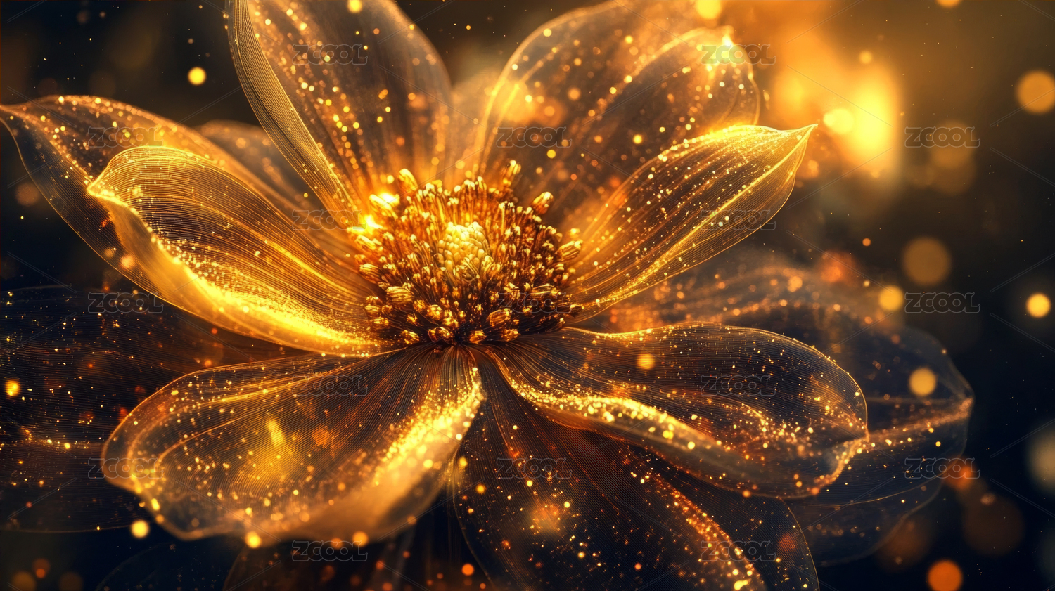 金色花卉特写3d抽象花朵PPT主视觉背景