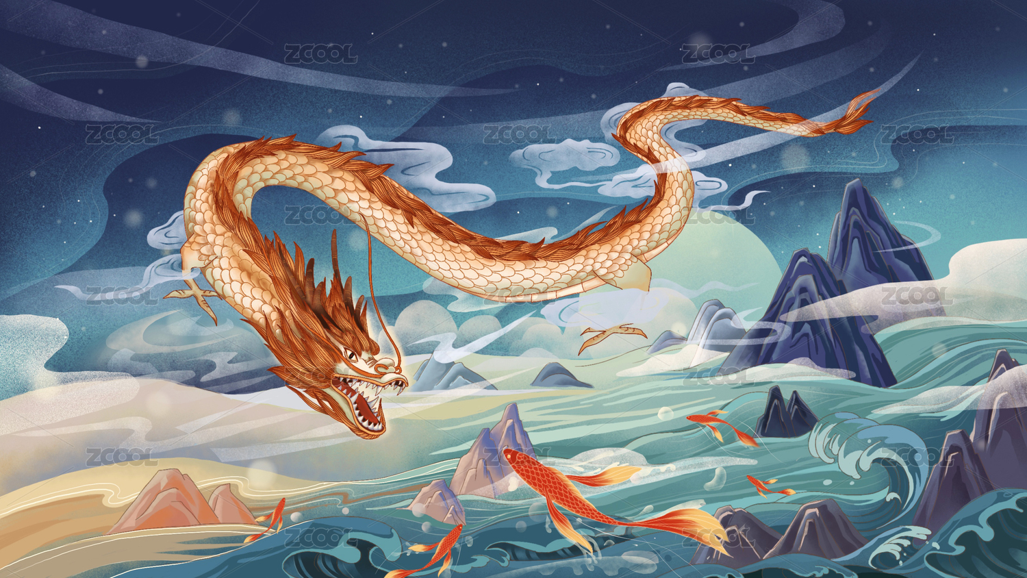 国潮风山脉间的巨龙
