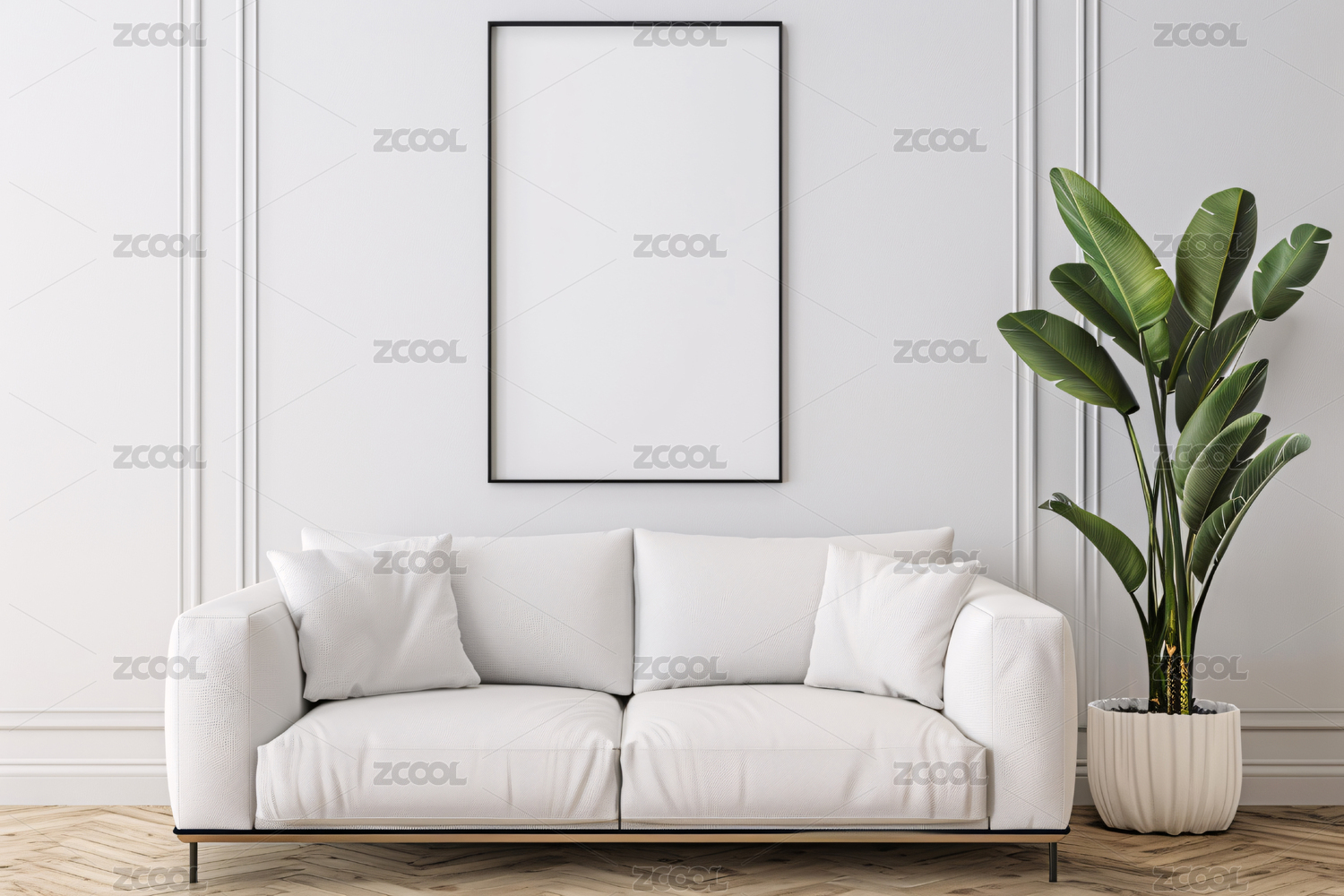 现代房间内部明亮干净设计沙发靠着墙壁背景
