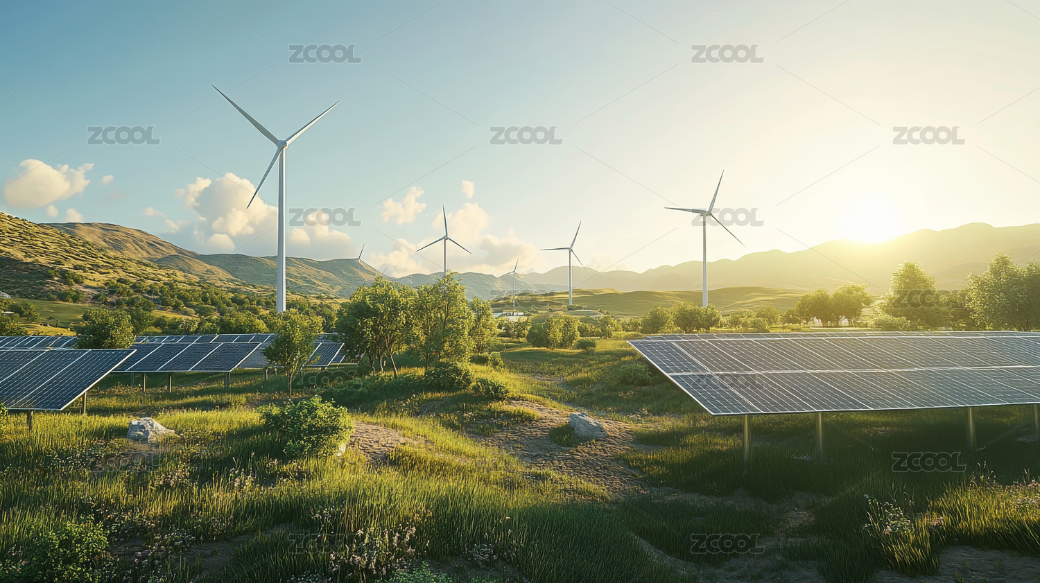 绿色山丘与新能源设施