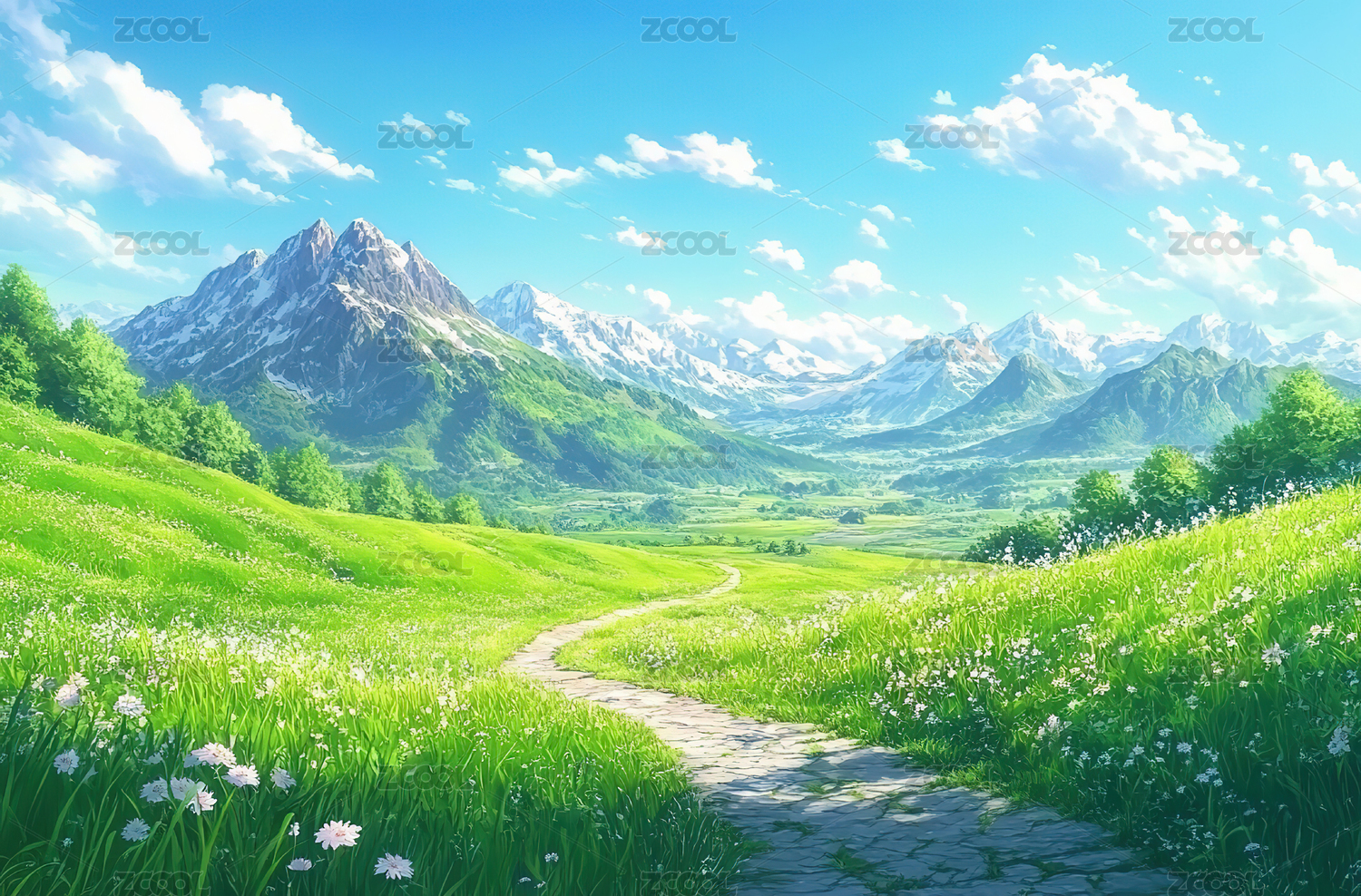 漫画风格晴朗的户外风景