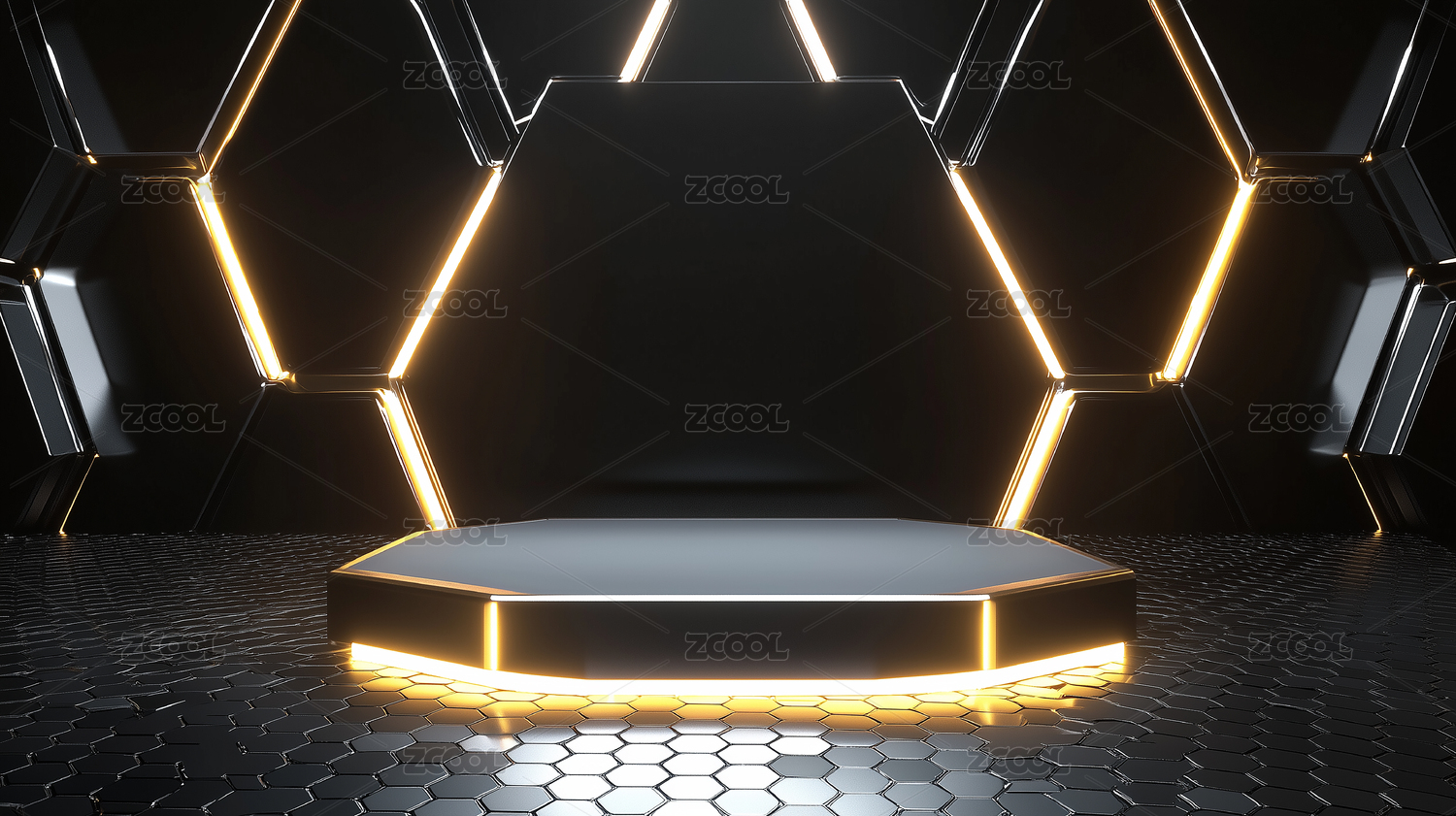 3D渲染黑色科技电商产品展台