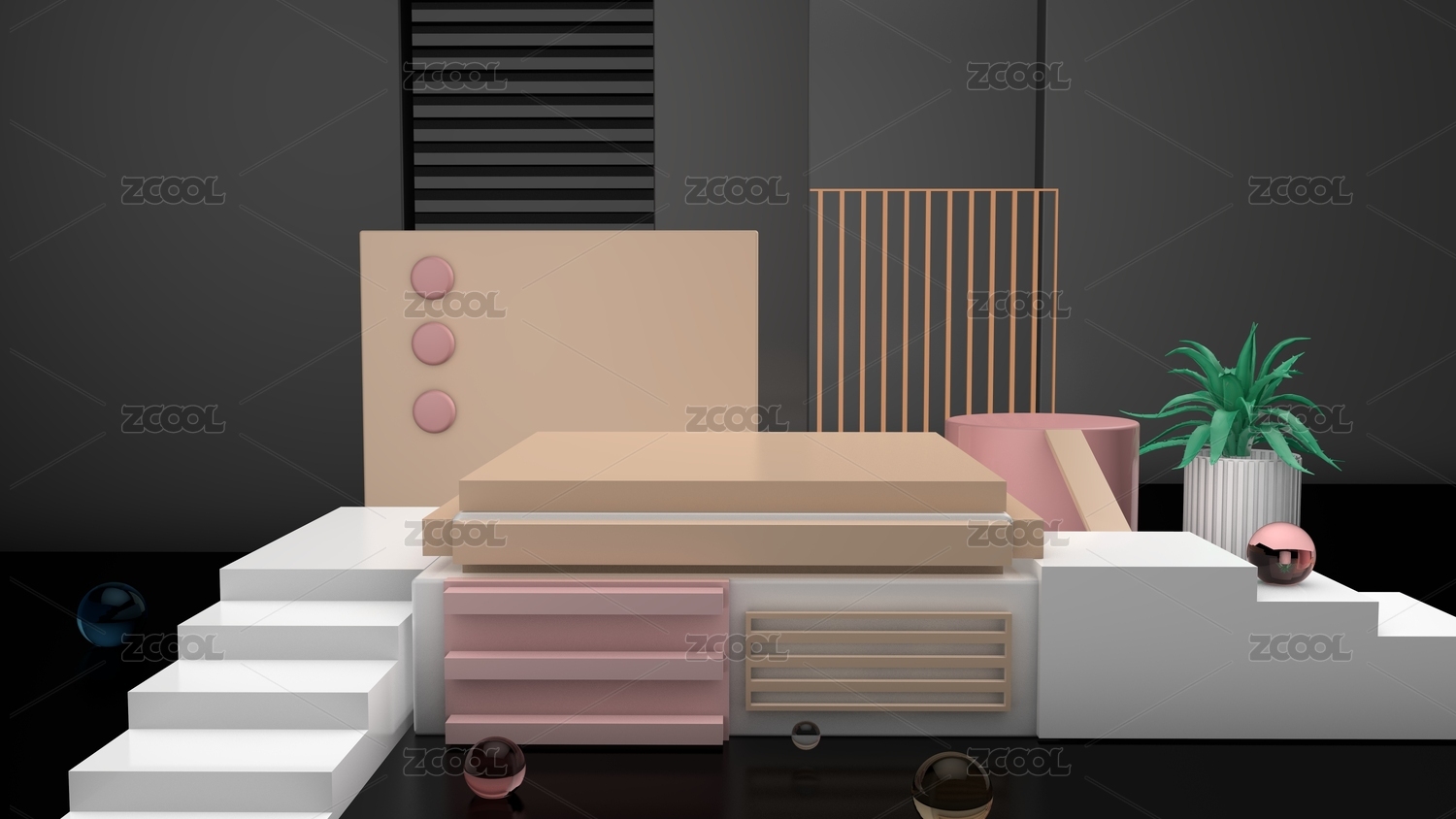 黑色,米色,花盆,植物,圆柱,条纹,平衡木,木纹,方块,展示架