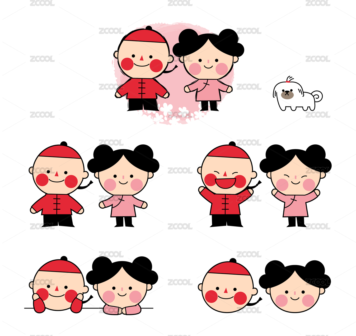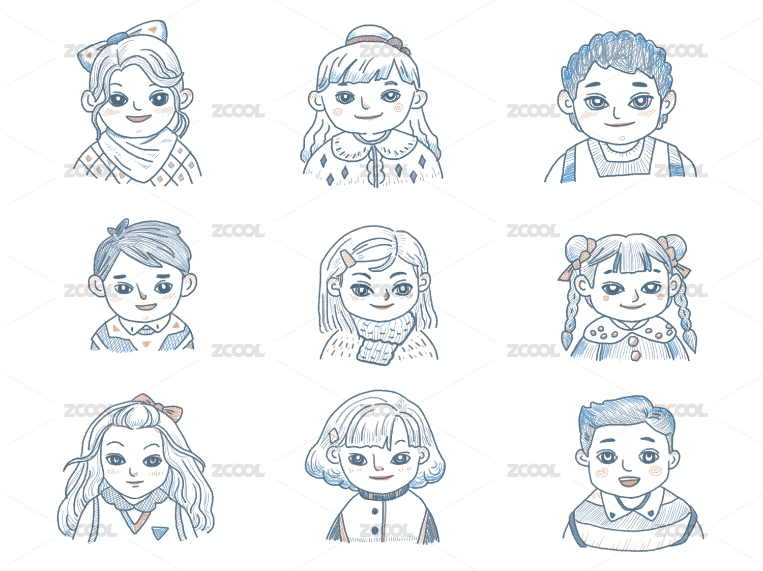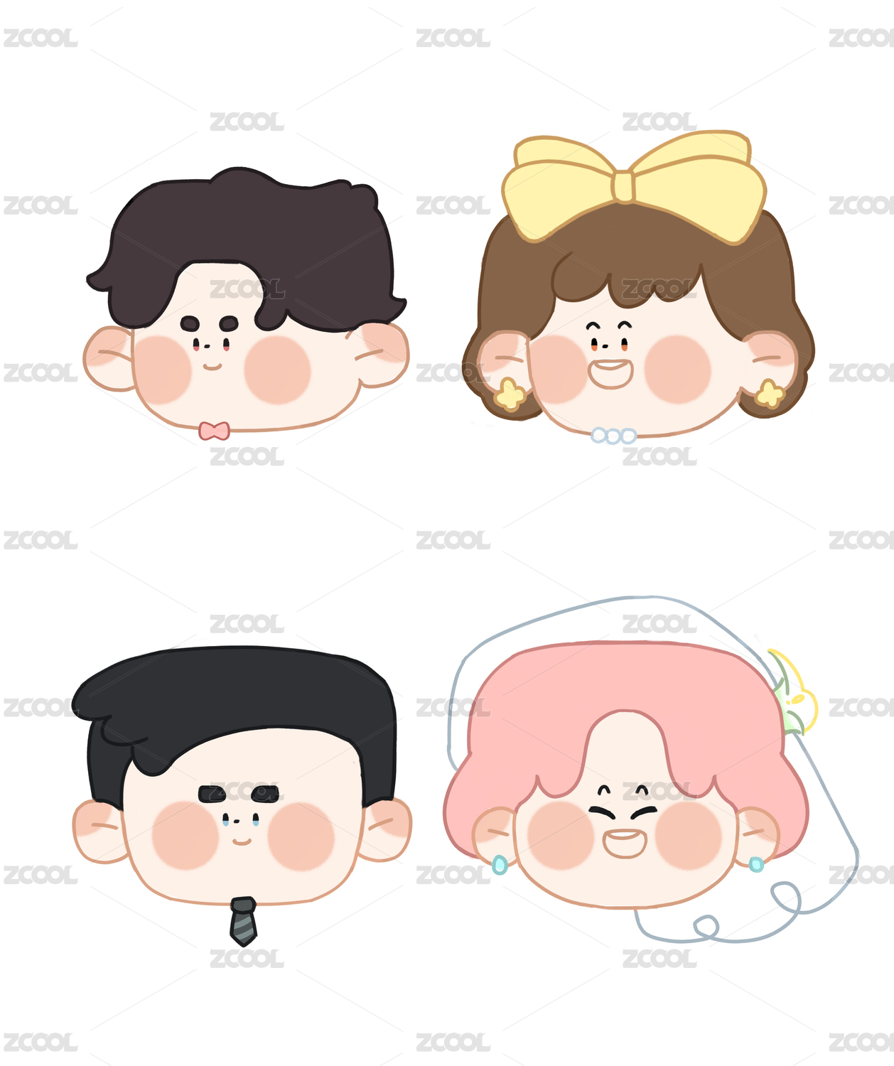 六个可爱情侣人物卡通头像插画手绘简笔画