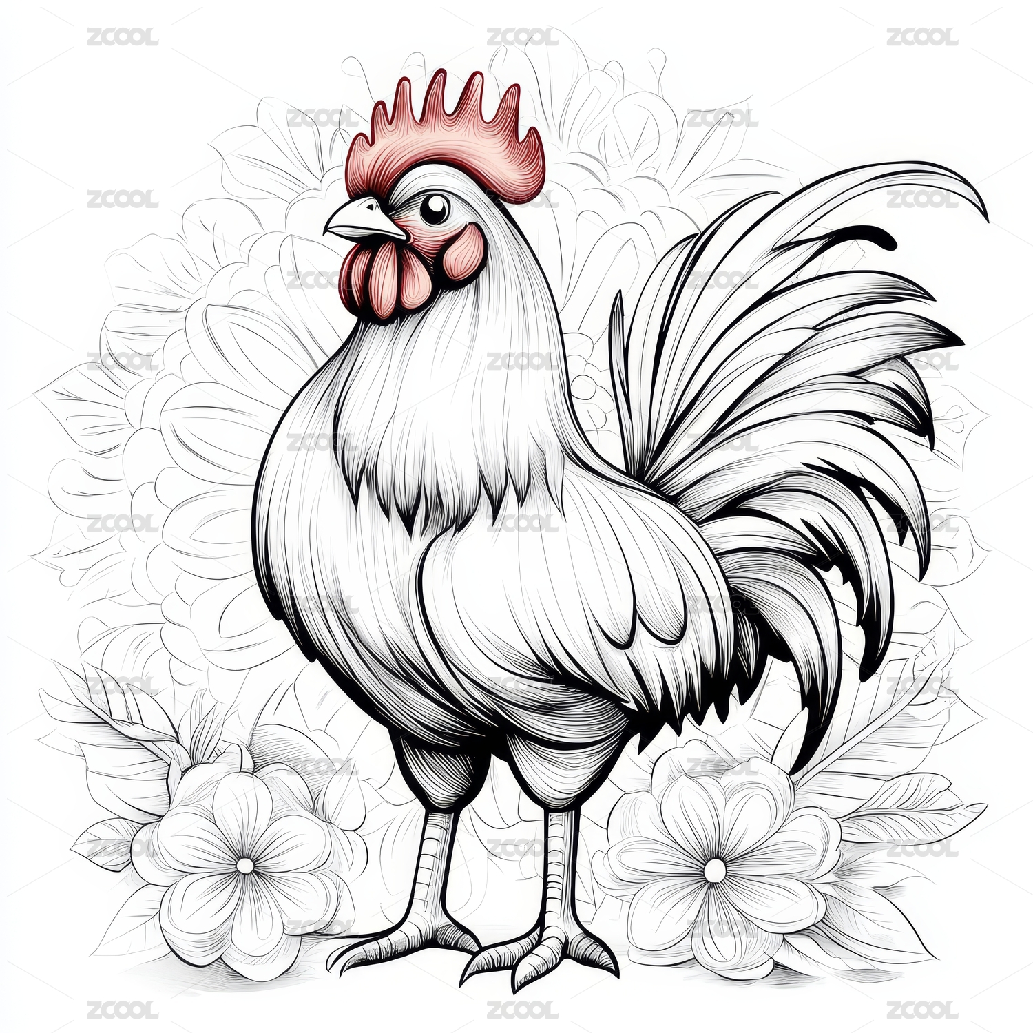 插图,动物,复古,公鸡,绘画,鸡冠,家禽,家庭,母鸡,肉鸡