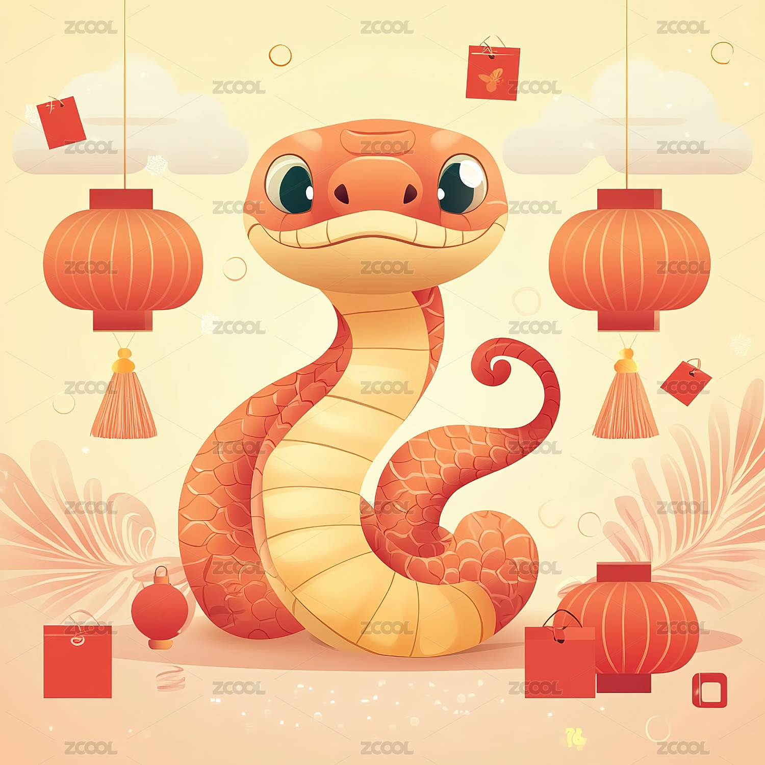 可爱简单的新年卡通蛇