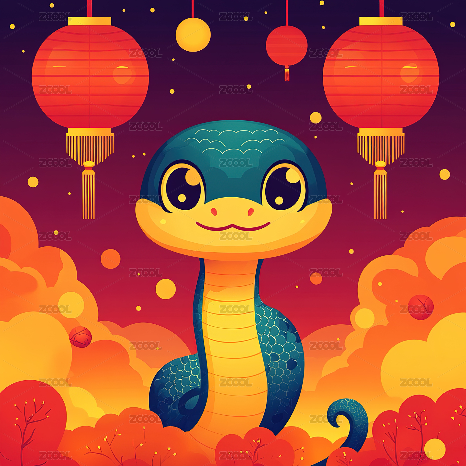 插画风格中国十二生肖蛇