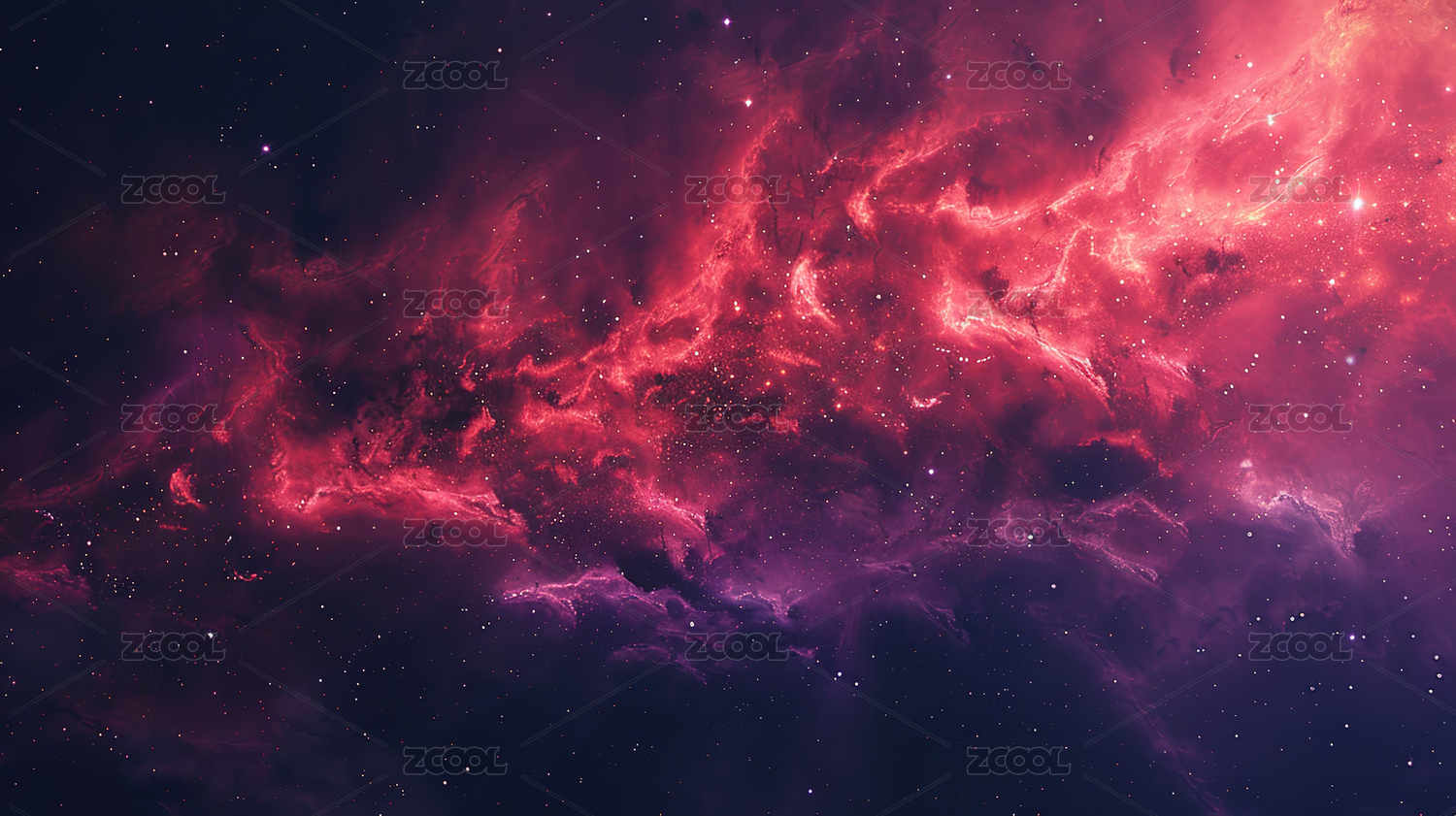 五颜六色的宇宙星云笼罩在太空尘埃中,天体