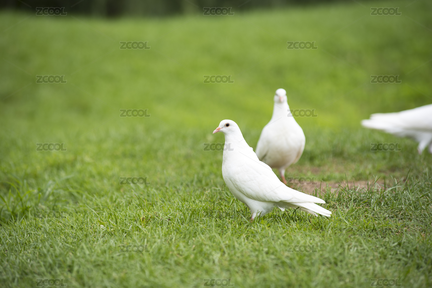 草坪上的白鸽子