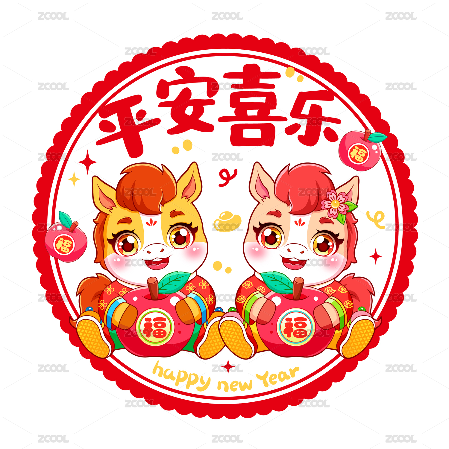 2025蛇年新年春节平安喜乐插画