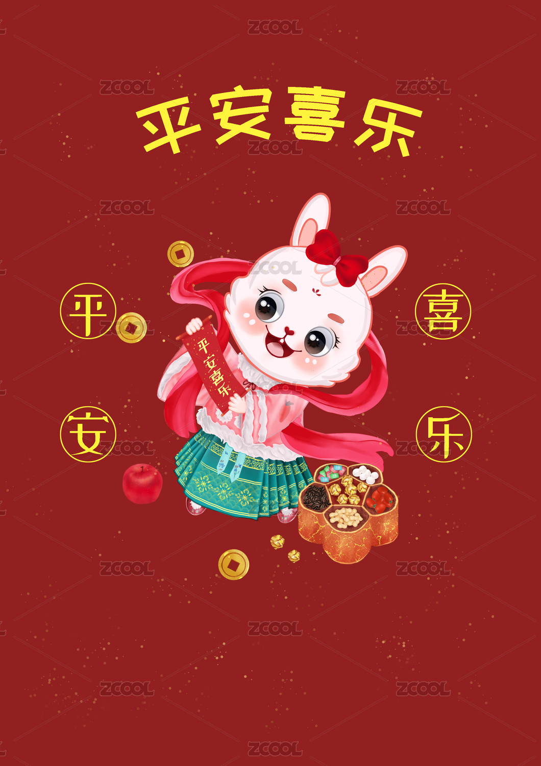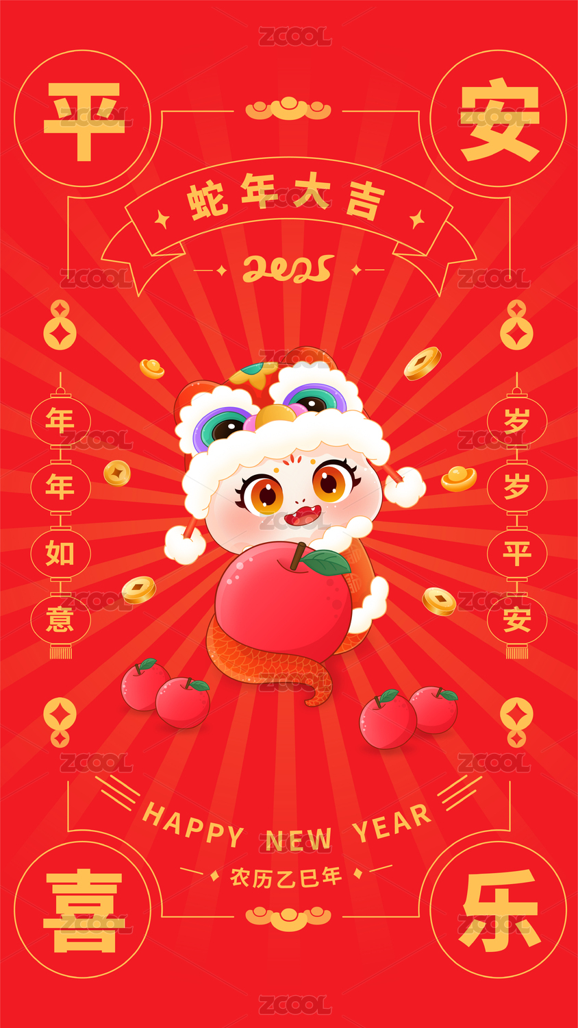 2025蛇年平安喜乐插画