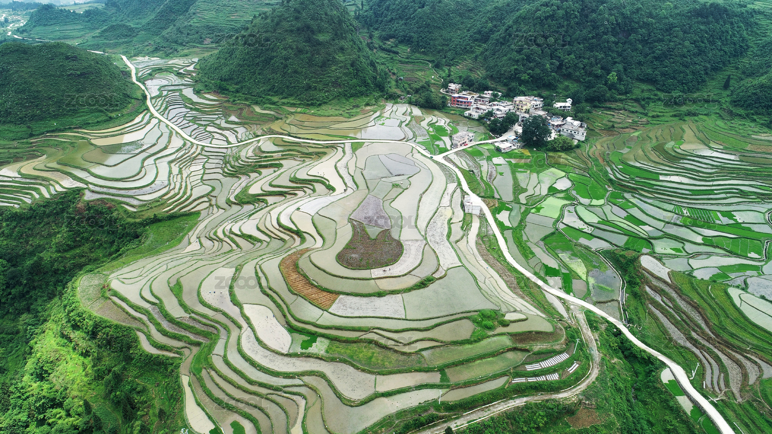 贵州省,贵阳市,花溪区,高坡苗乡,少数民族,梯田,云海,村庄,乡村,收货