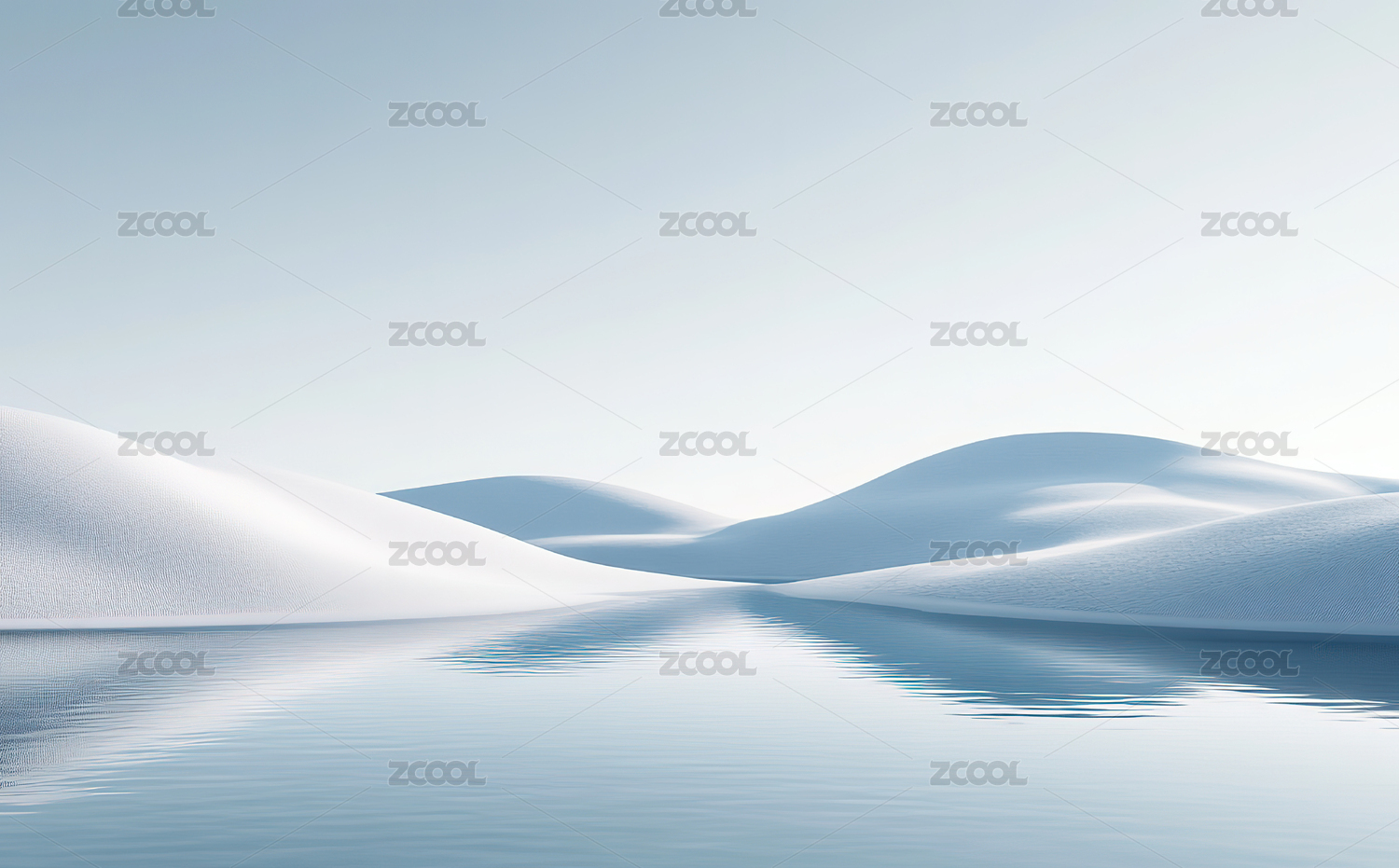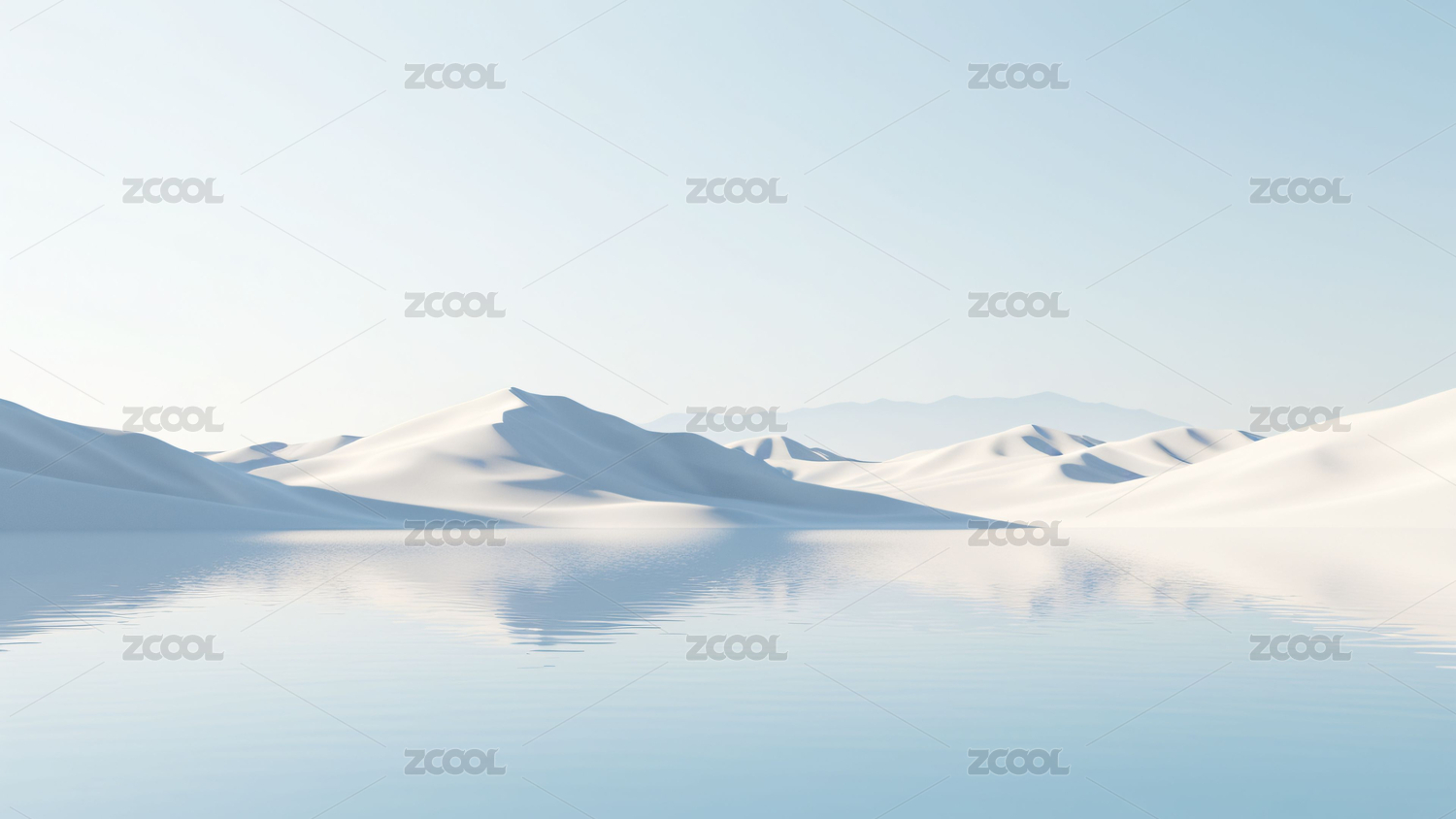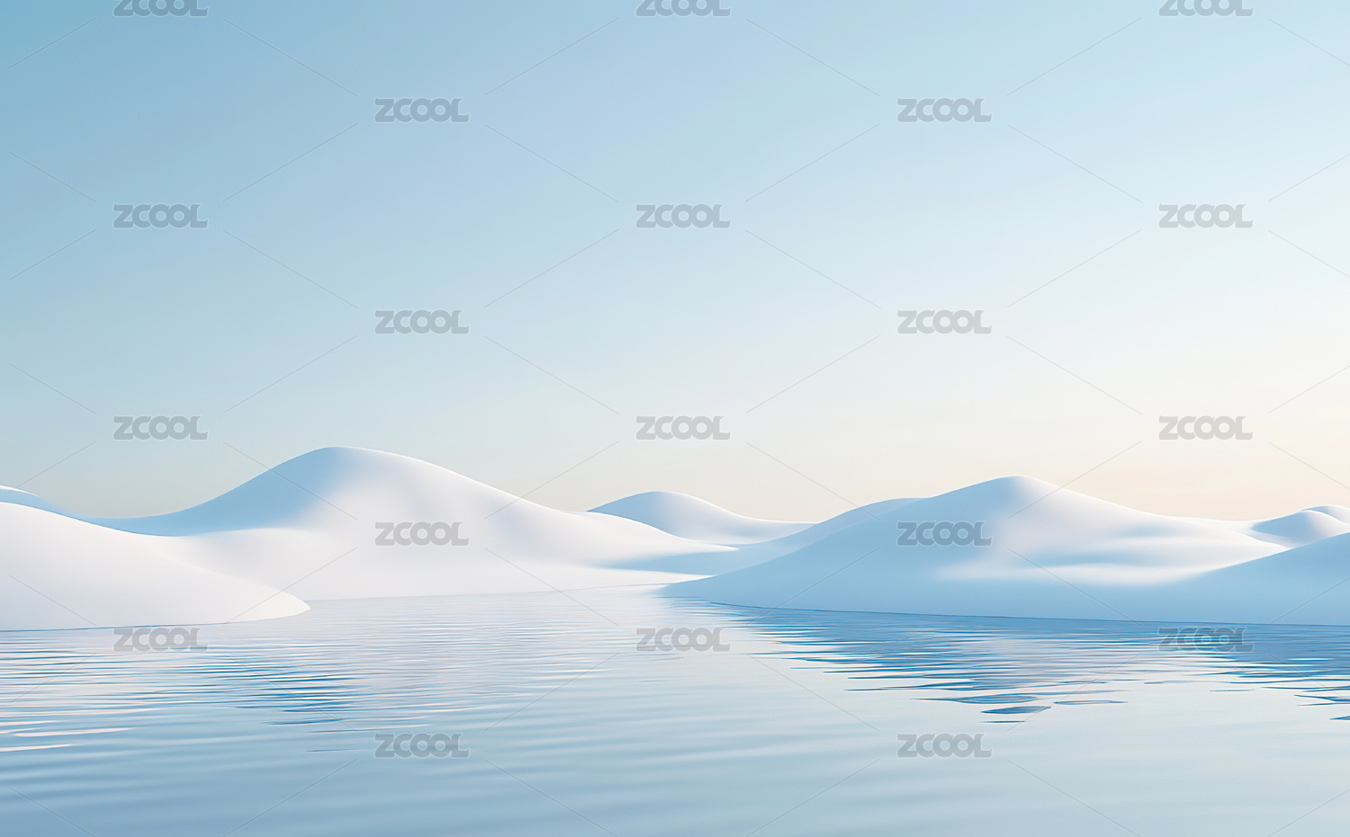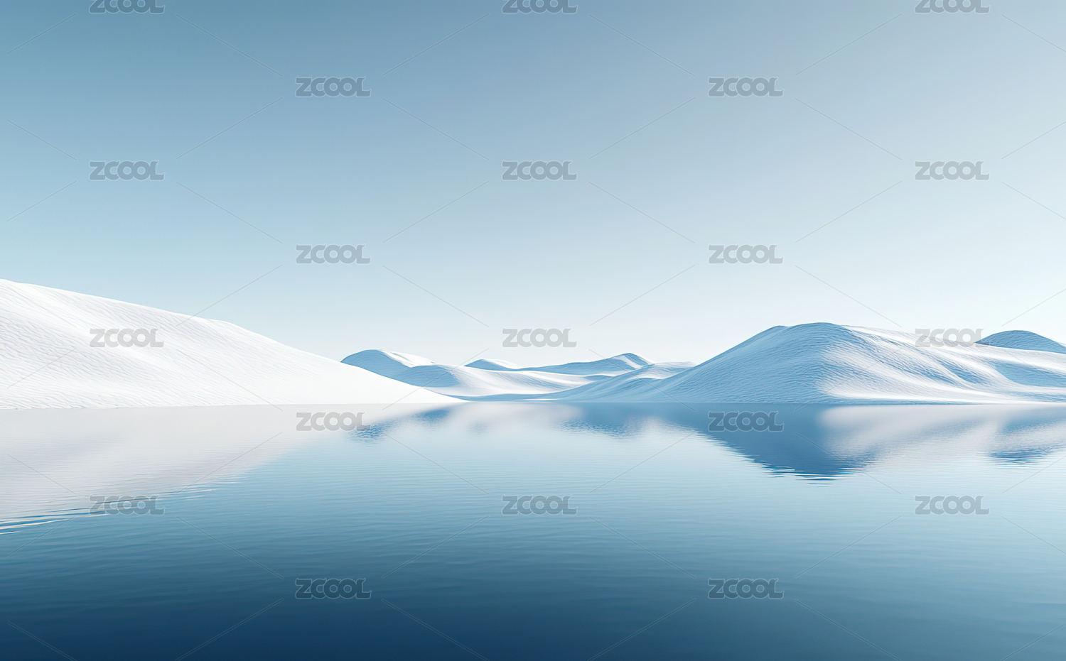 白色,山丘,山脉,湖面,水面,天空,简约,倒影,三维