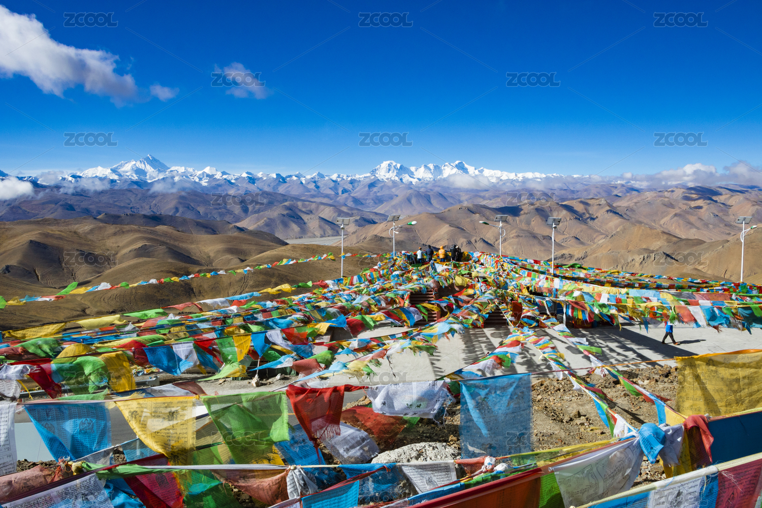 西藏,定日县,加吾拉山口,珠穆朗玛峰,喜马拉雅山,珠峰公园,经幡,祈福,雪山,高山