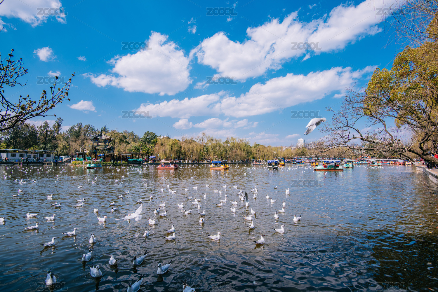 冬季,昆明翠湖公园里大量从西伯利亚飞来过