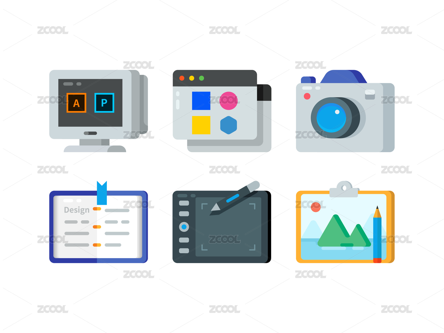 工具类扁平图标6个图标设计