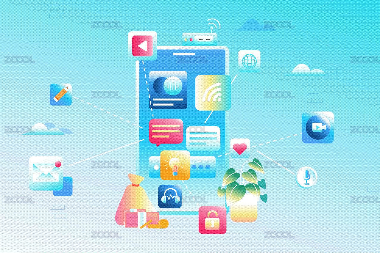 仪器设备显示器手机连接状态配图扁平插画