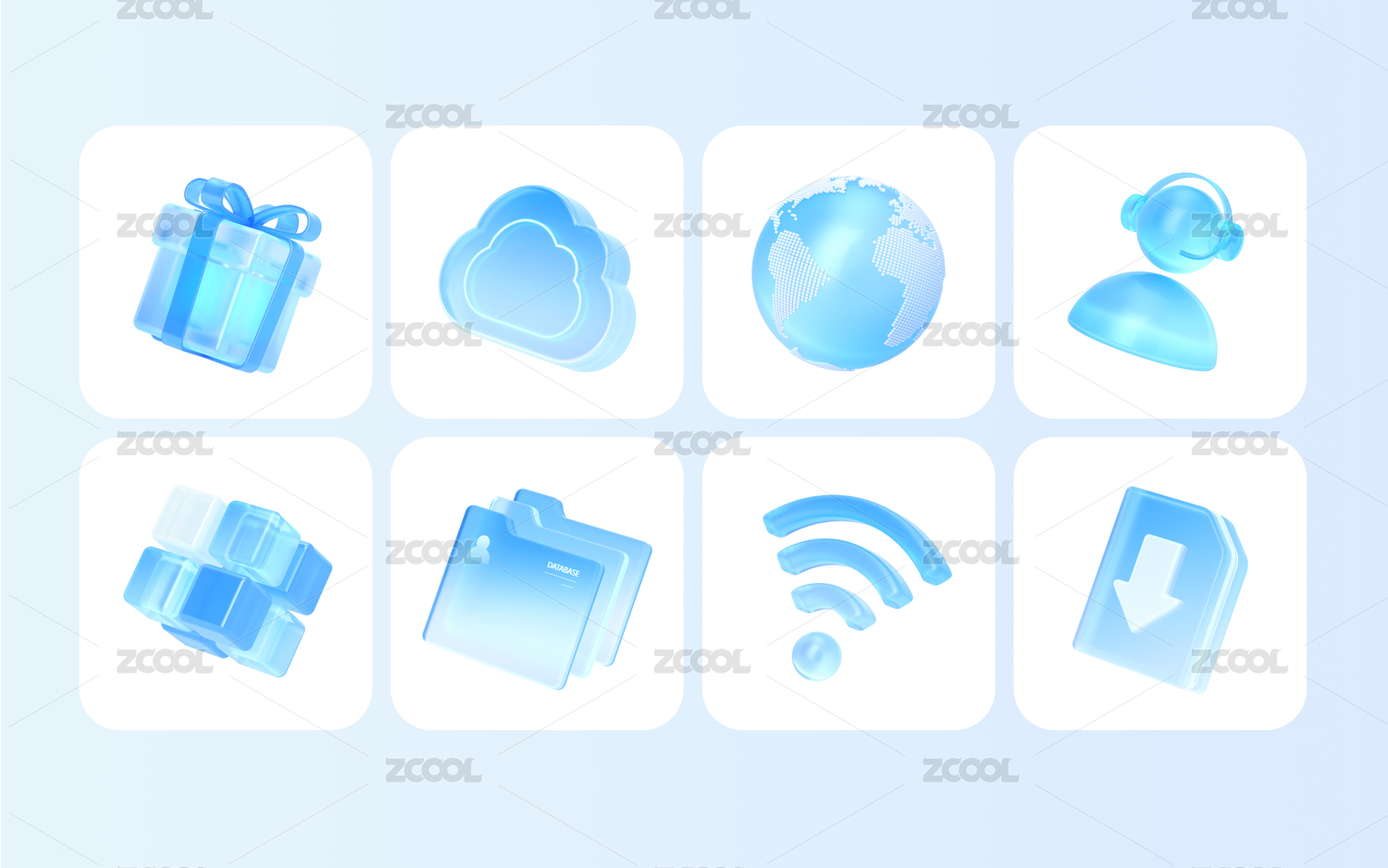 科技蓝透光智能概念未来物联网络图标合集
