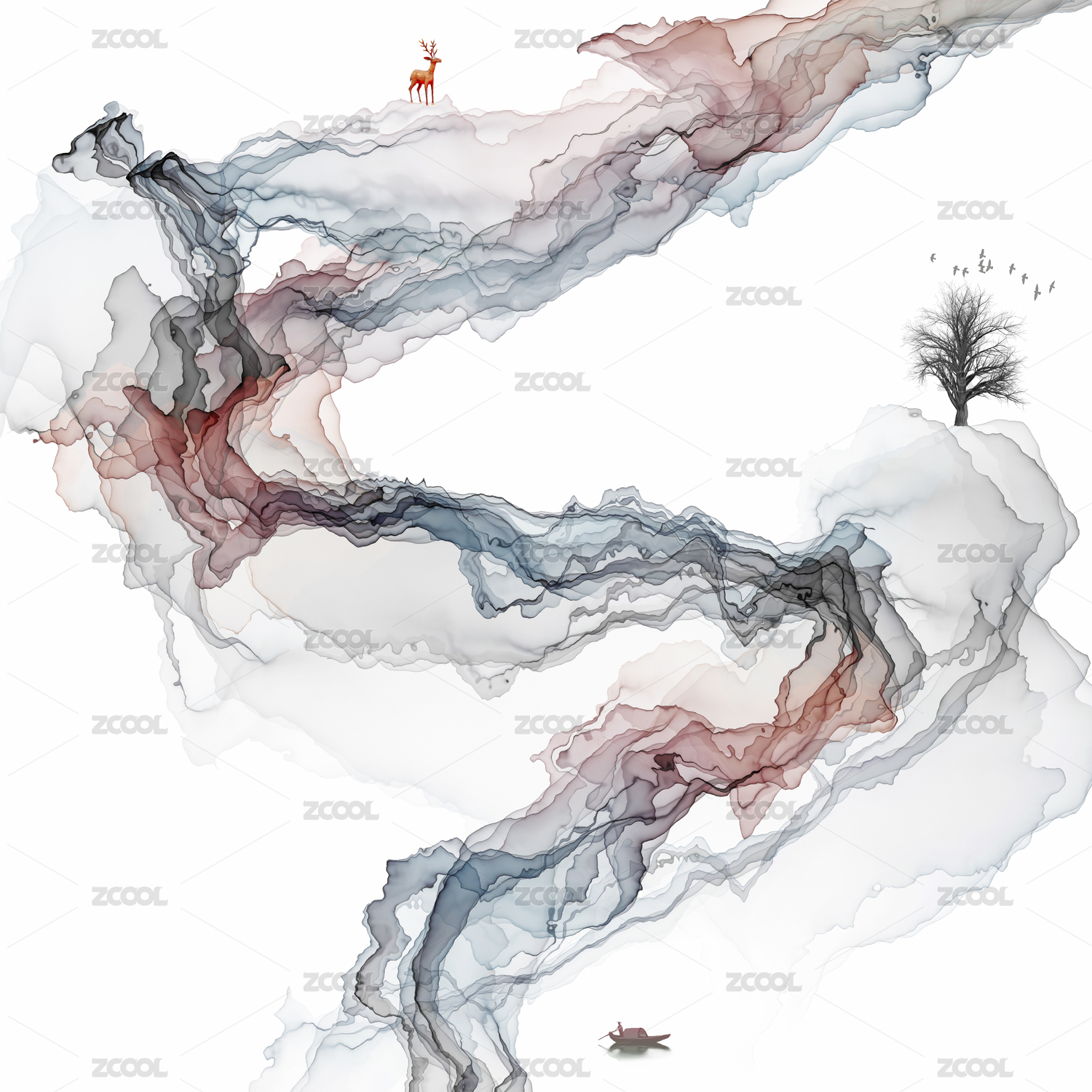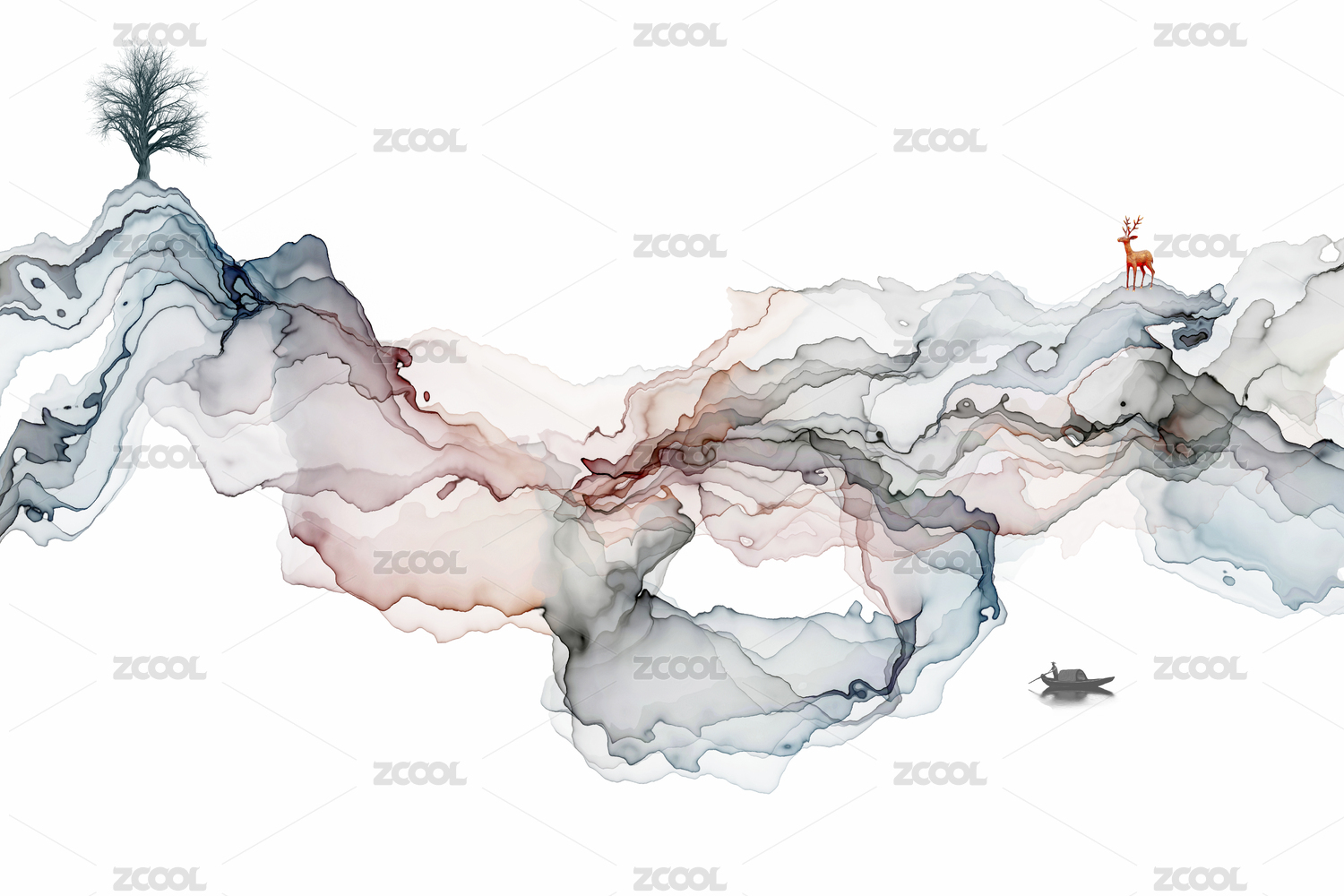 水墨,线条,山水,艺术,抽象,色彩,山,水流