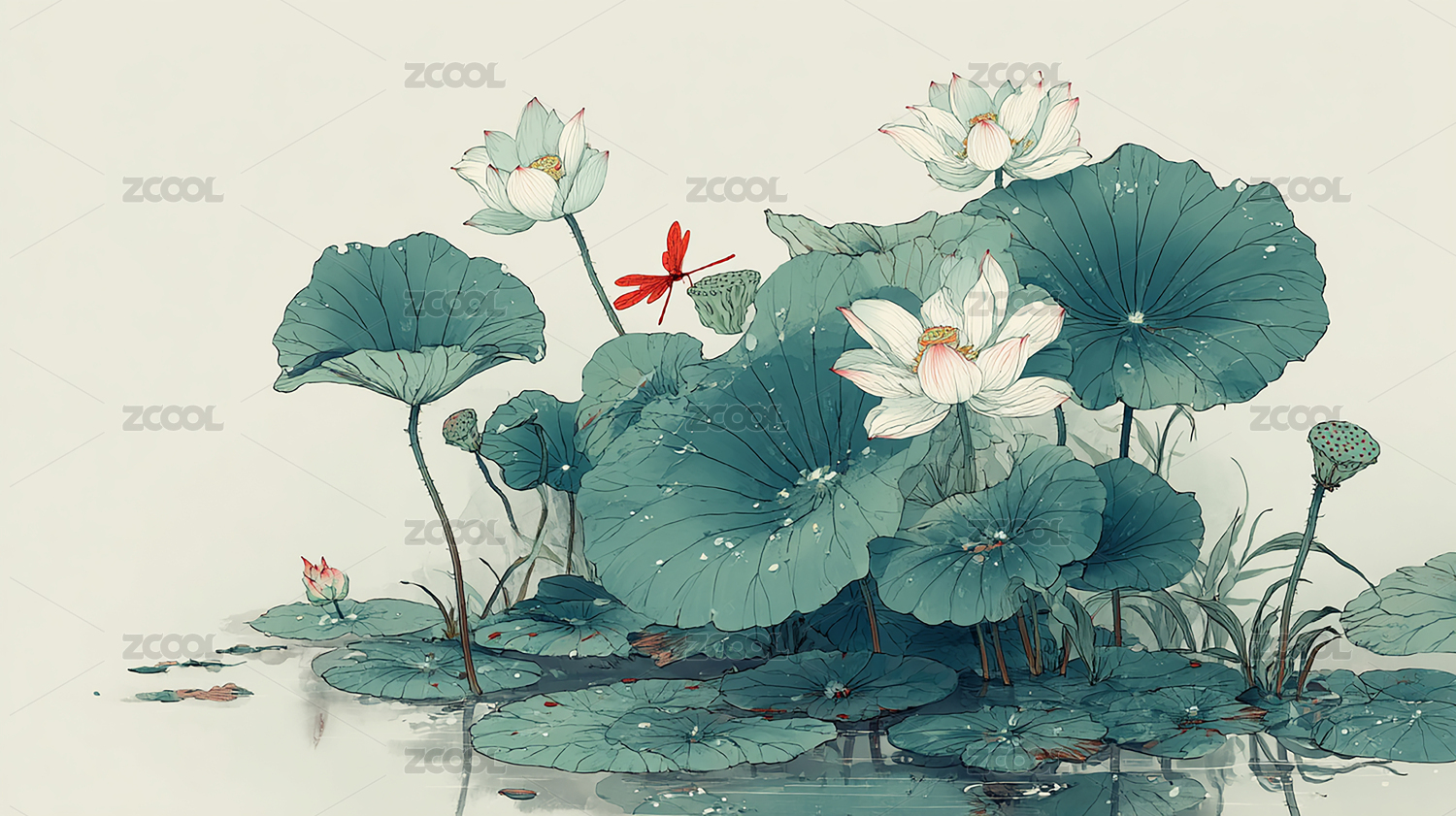 莲花,荷花,荷叶,水面,古风,波纹,水墨,水墨画,古典,纹样