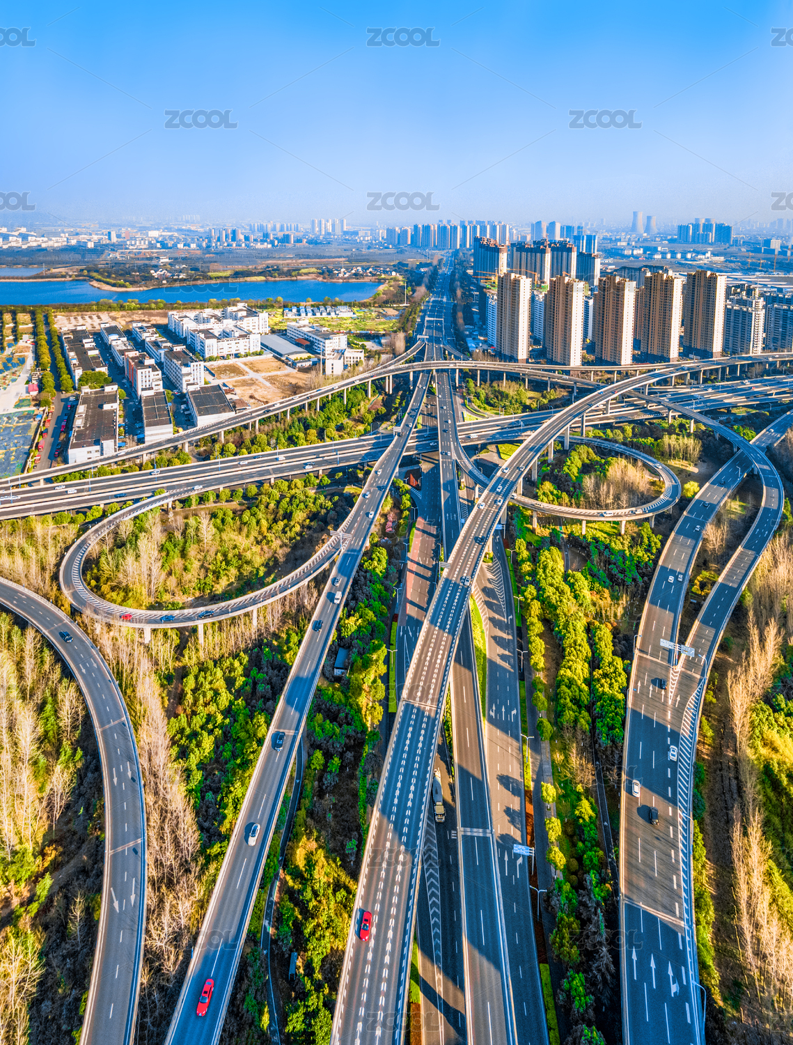 中国浙江杭州滨江区奥体机场高速立交航拍