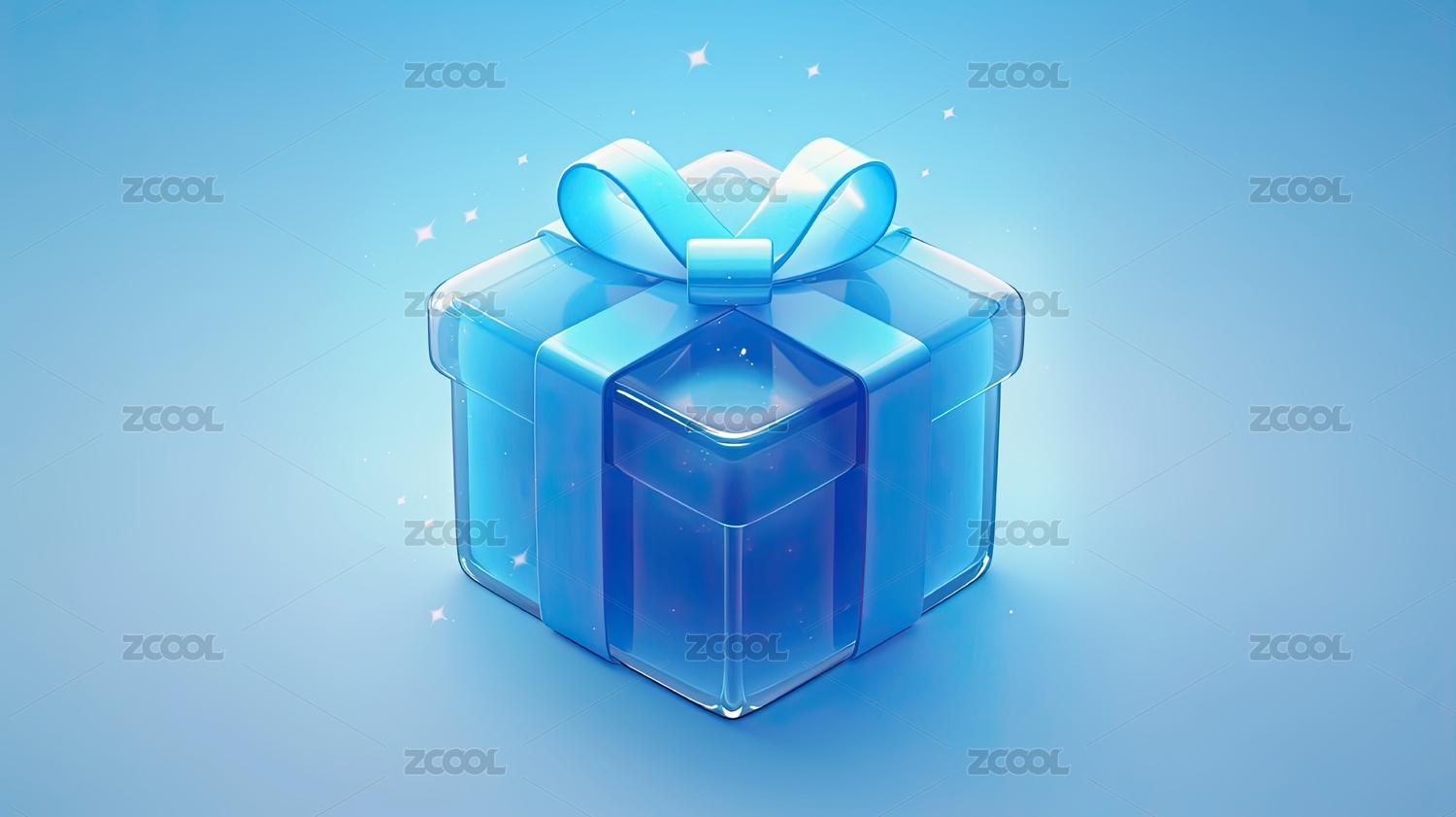 透明礼盒与蓝色丝带
