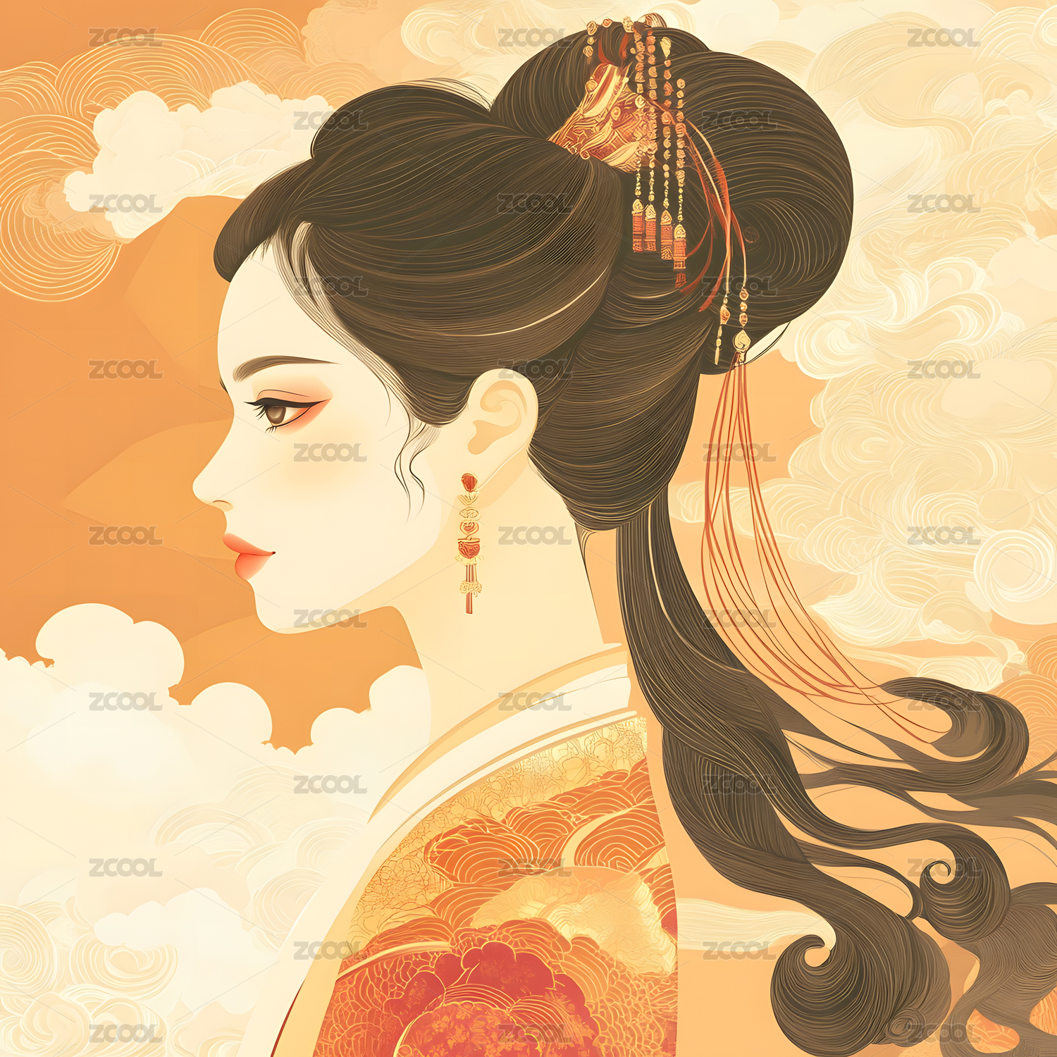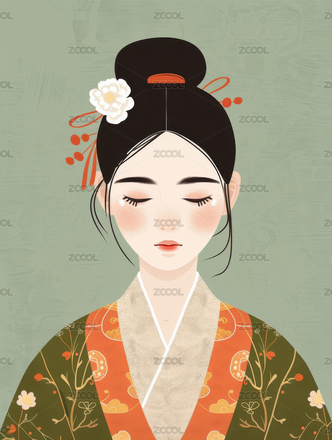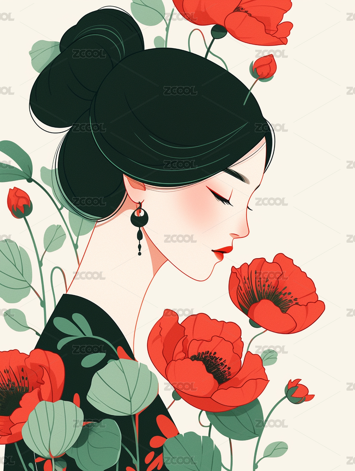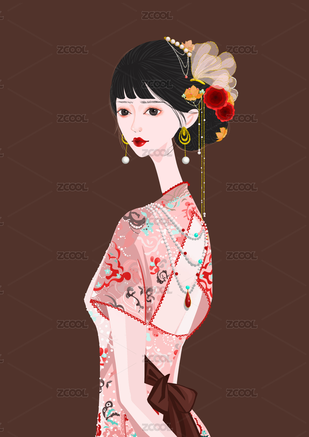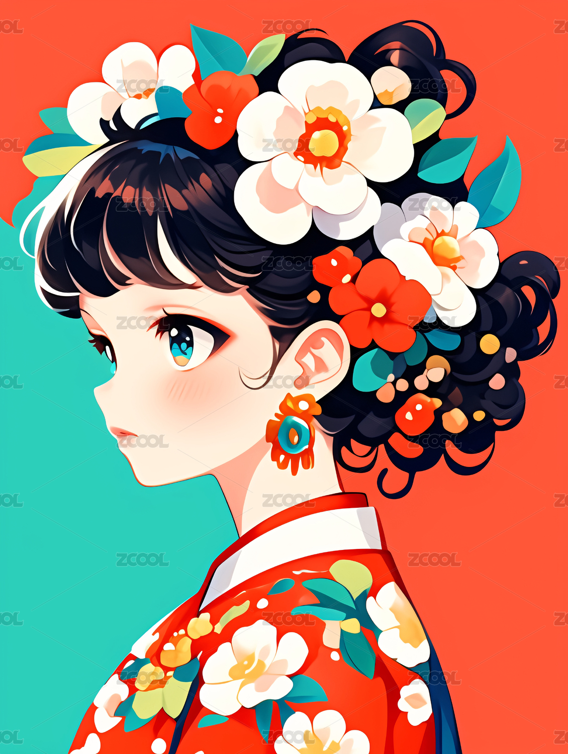 女孩,女生,少女,美女,女性,花,戴花,盘发,长发,优雅