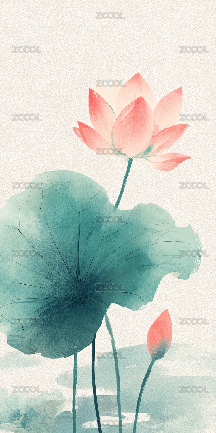 简约水墨风荷花插画