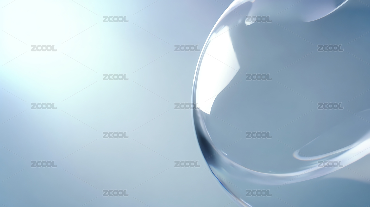 三维渲染蓝色背景下强烈玻璃质感的物体