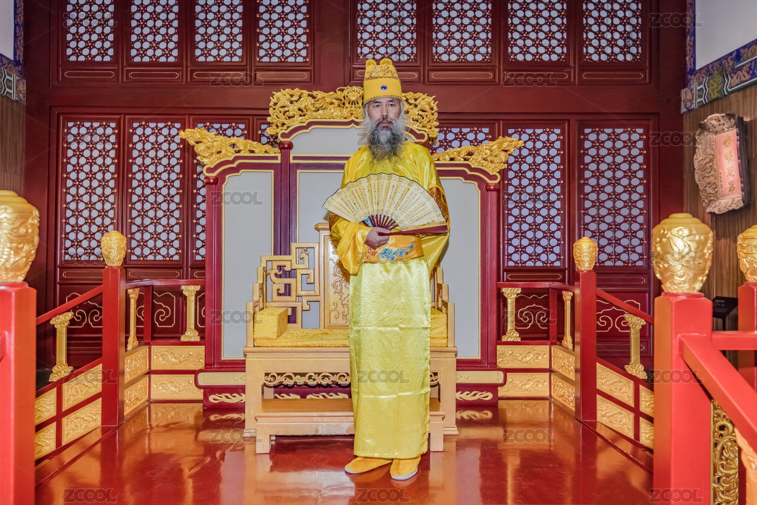 一个人,全景,棚拍,灯光,工艺品,民俗,黄色,金色,建筑装饰物,帝王