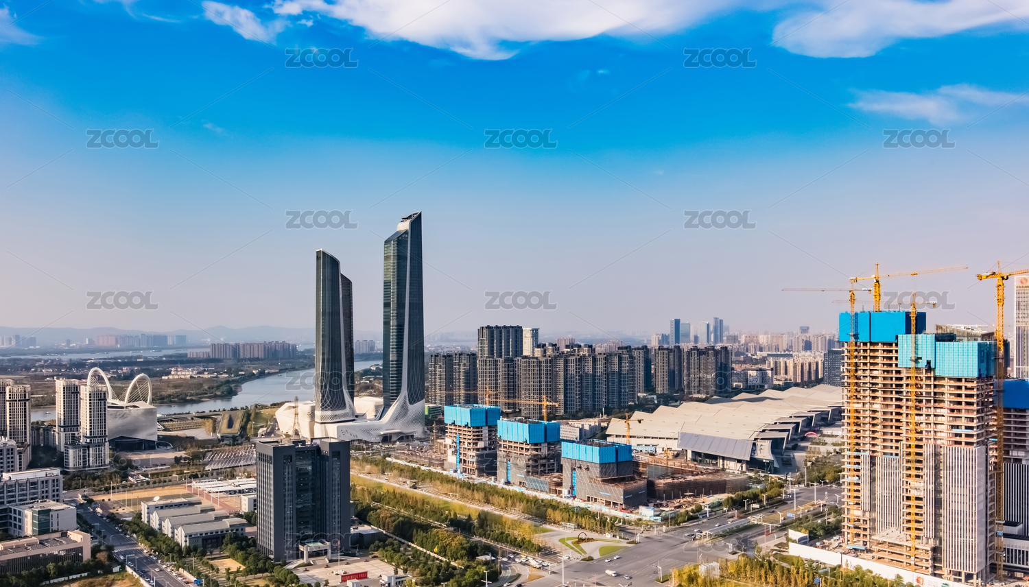 中国江苏南京南京青奥中心和南京眼大桥航拍