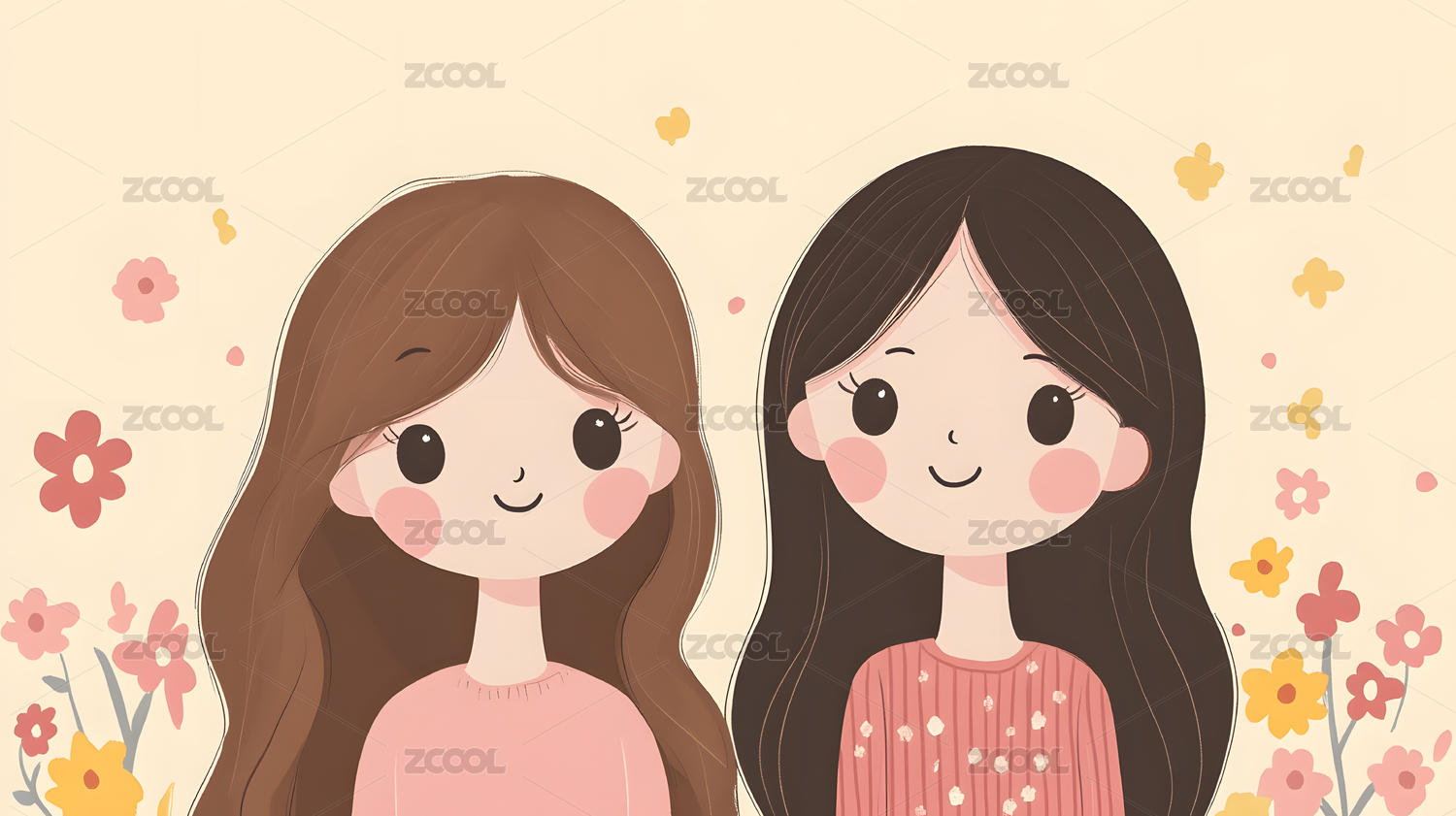 花, 花朵, 黄色,女孩, 绿色, 肖像, 红色, 快乐, 友谊, 朋友