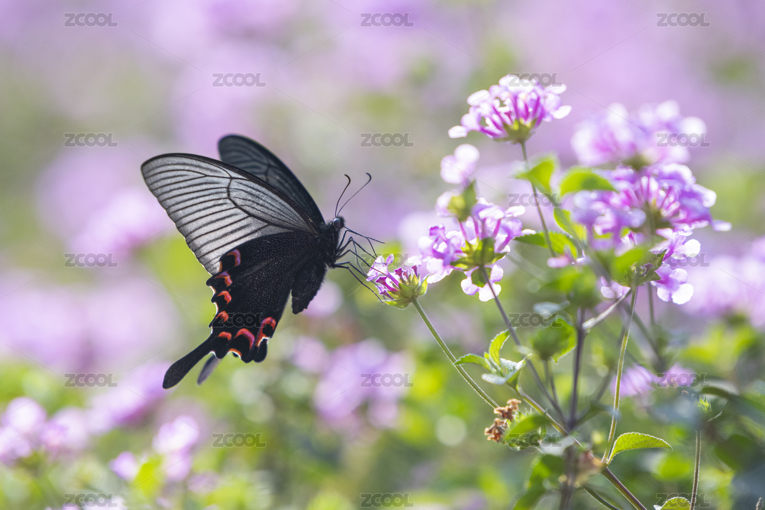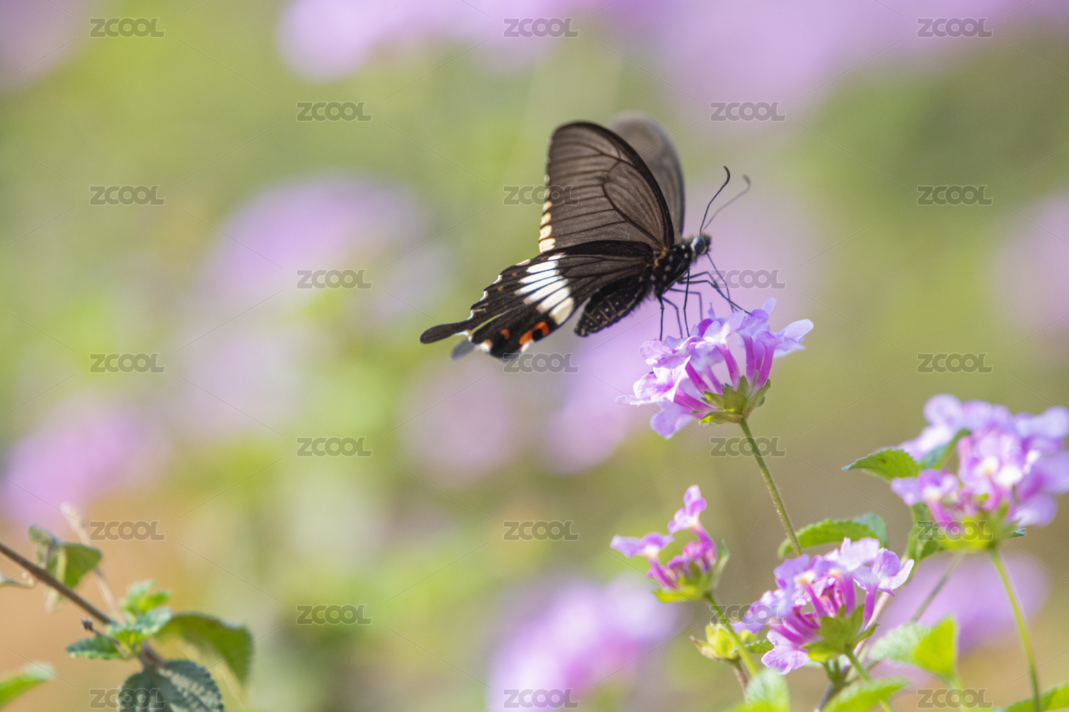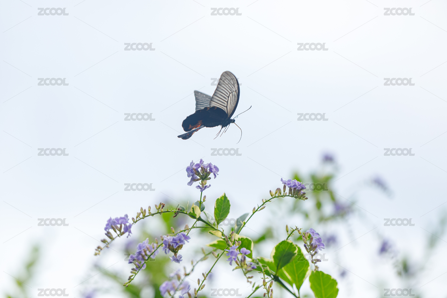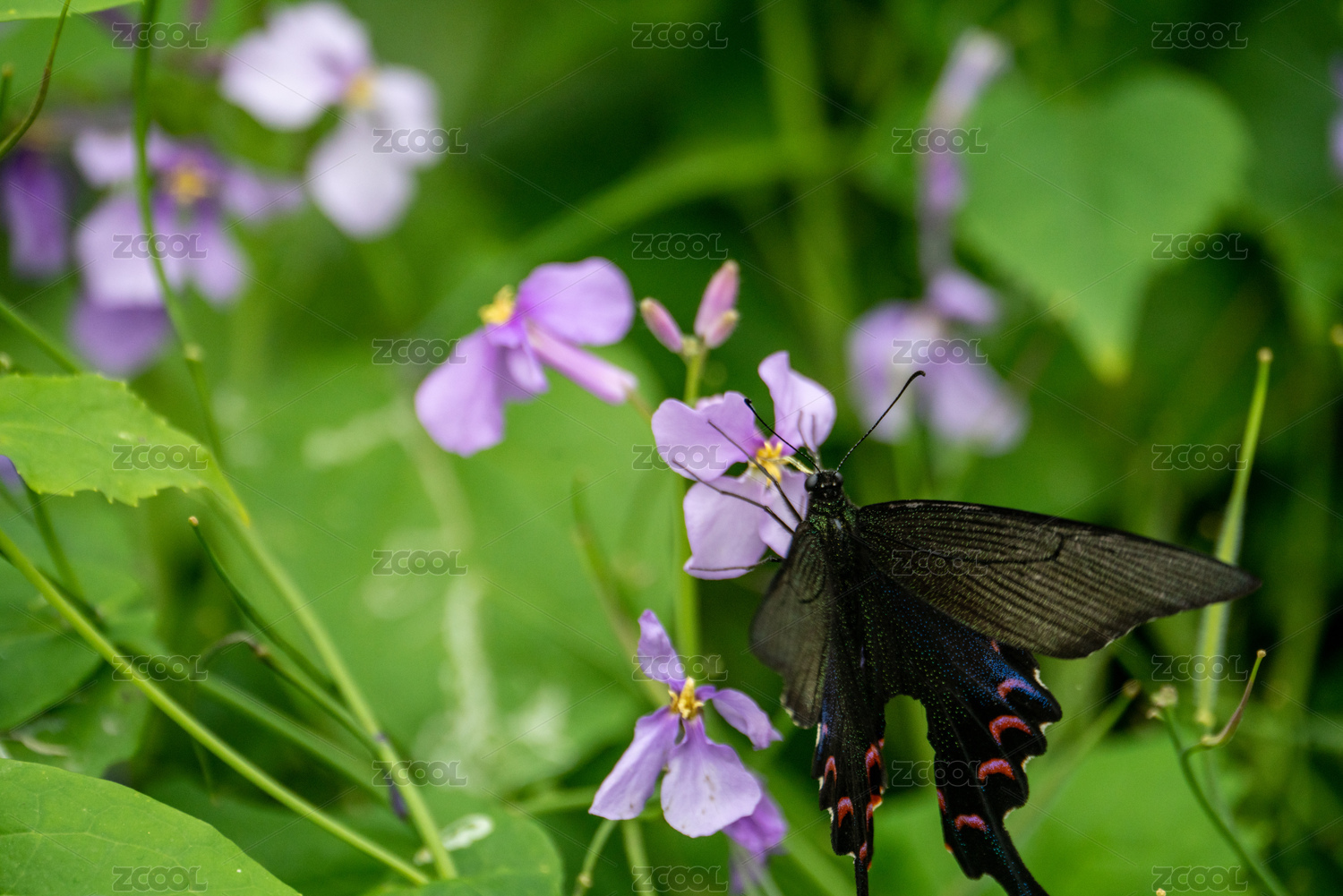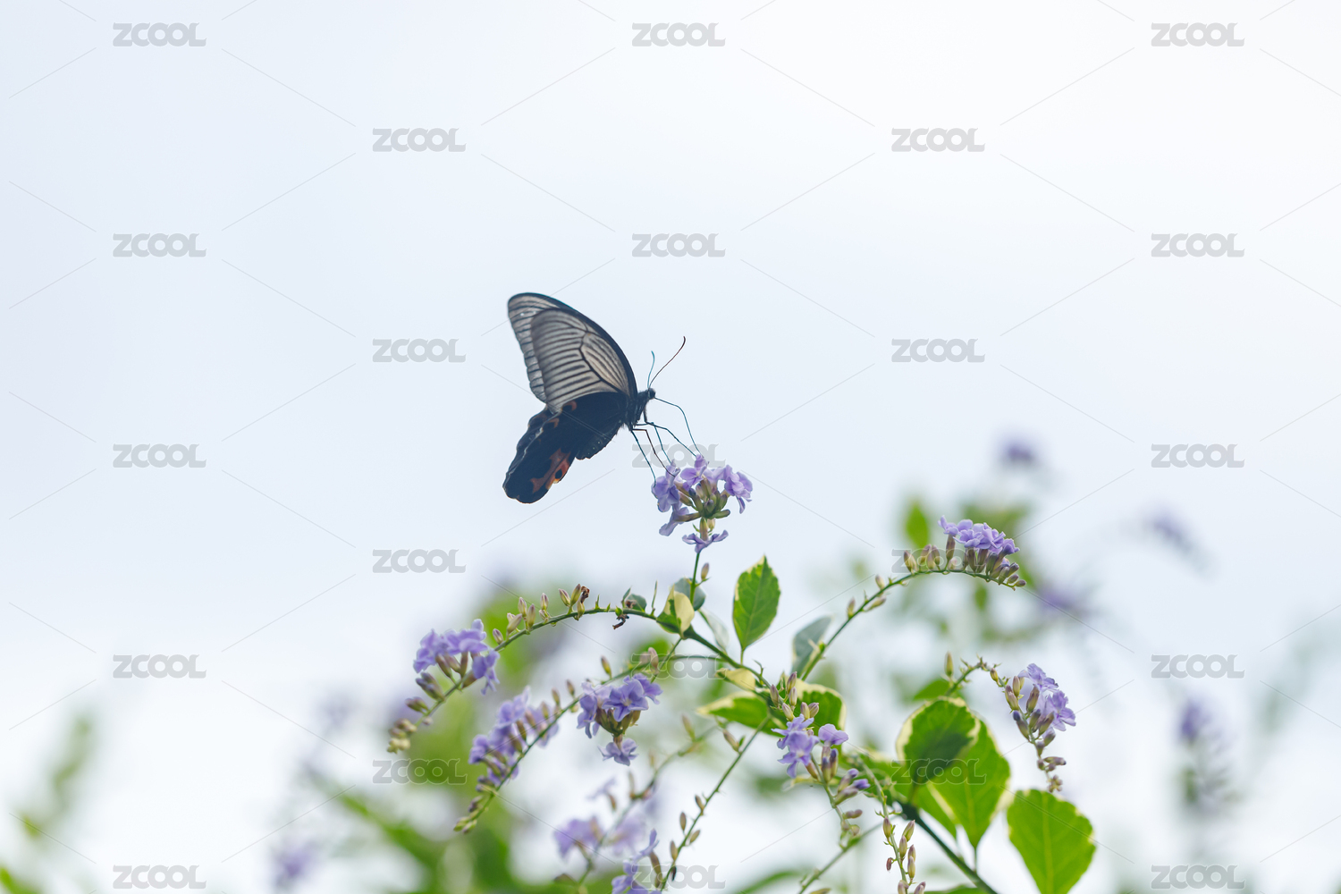花朵上的黑色蝴蝶