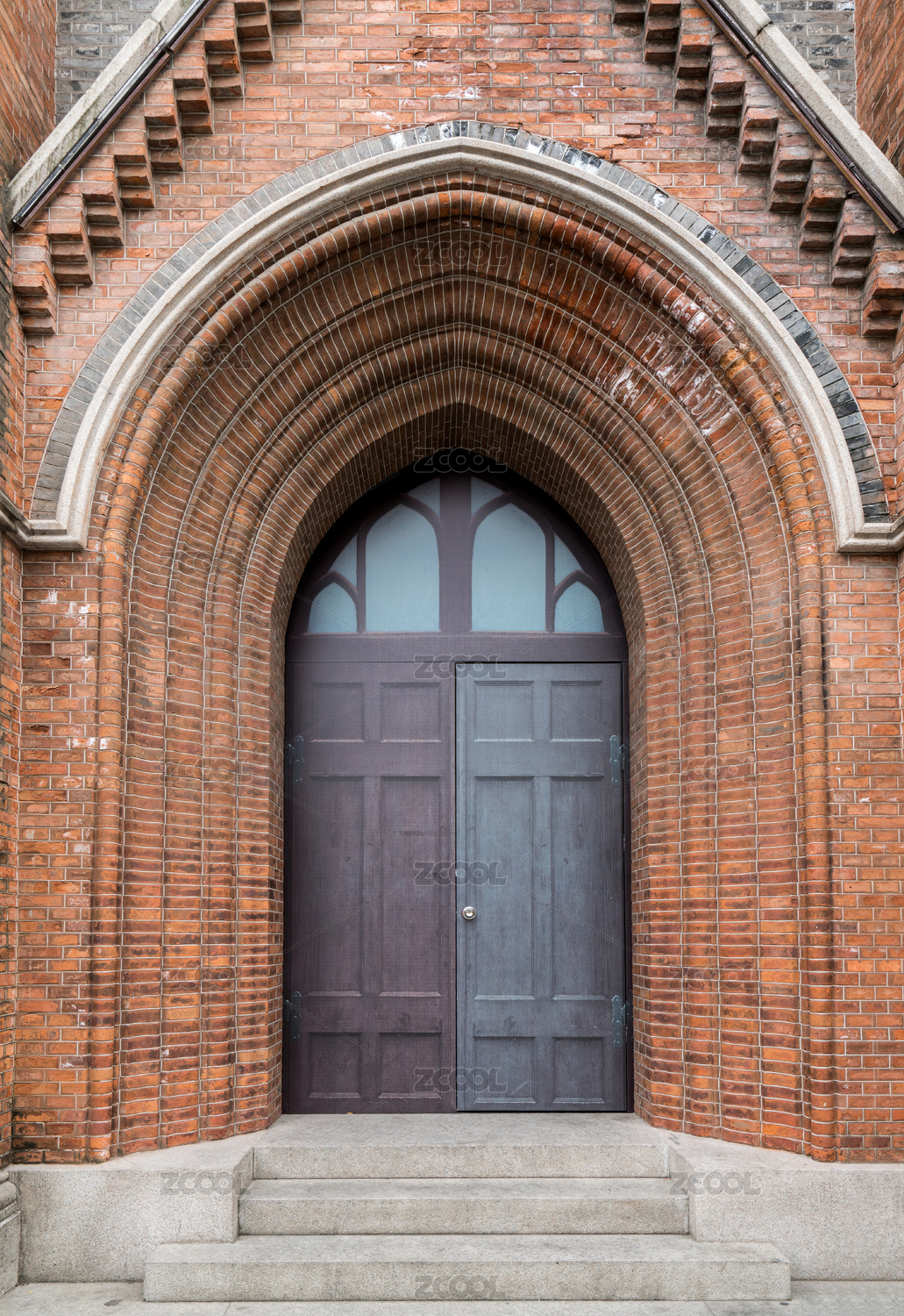 上海街头古旧教堂建筑大门及外墙特写