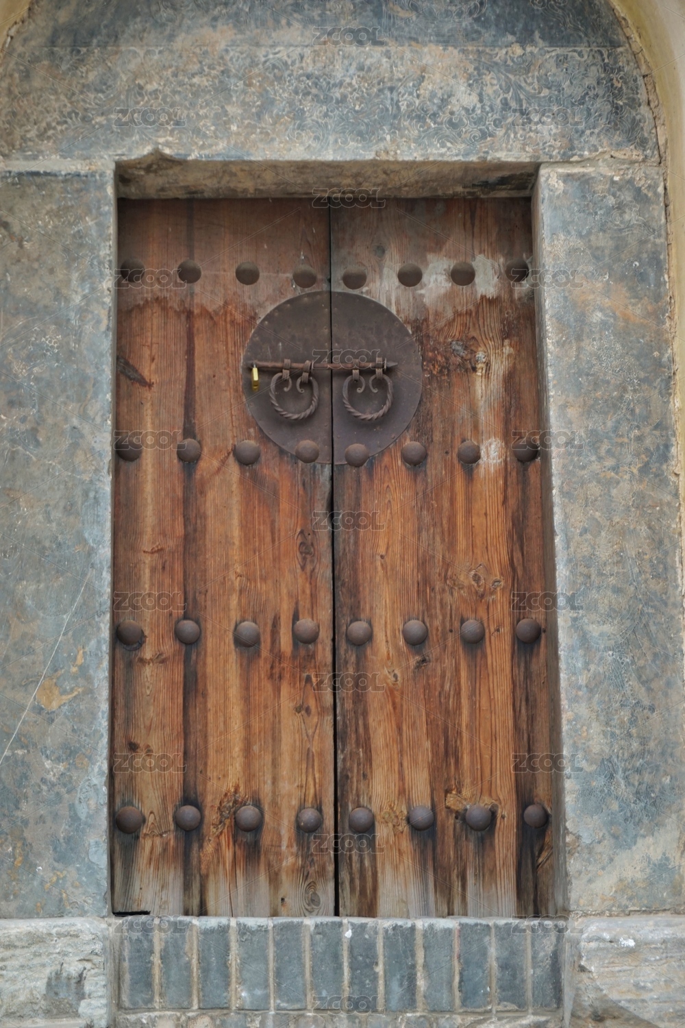 带有铁雕塑装饰的复古中世纪木门