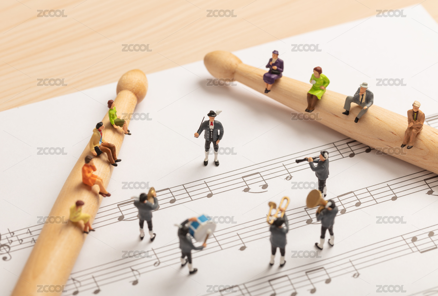 微缩创意音符音乐交响乐演奏指挥棒与听众