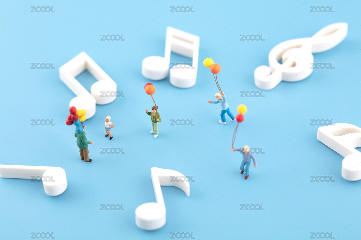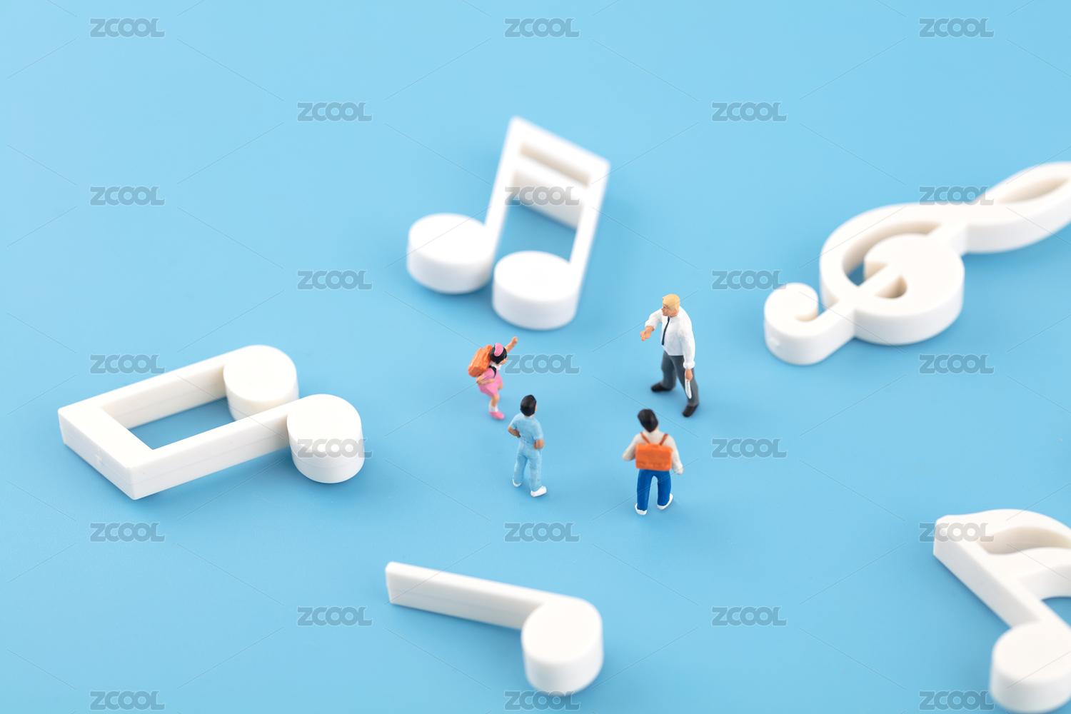 微缩摄影音乐符号和小学生