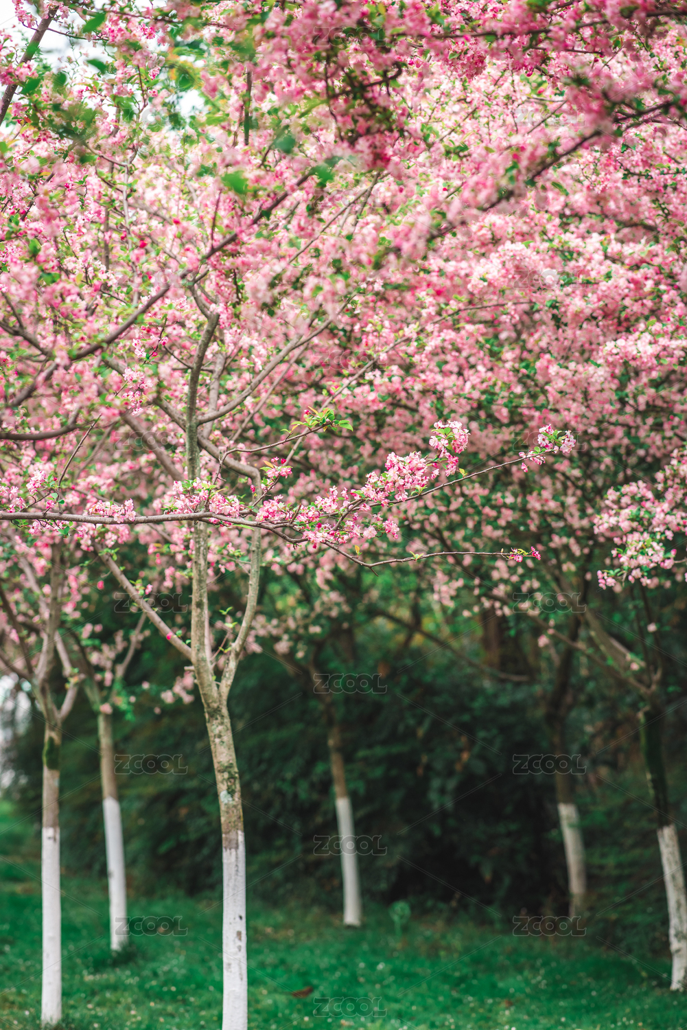 春天,垂丝海棠,粉色,海棠花,盛放,绿叶,树林,行道树,盛花期,海棠树