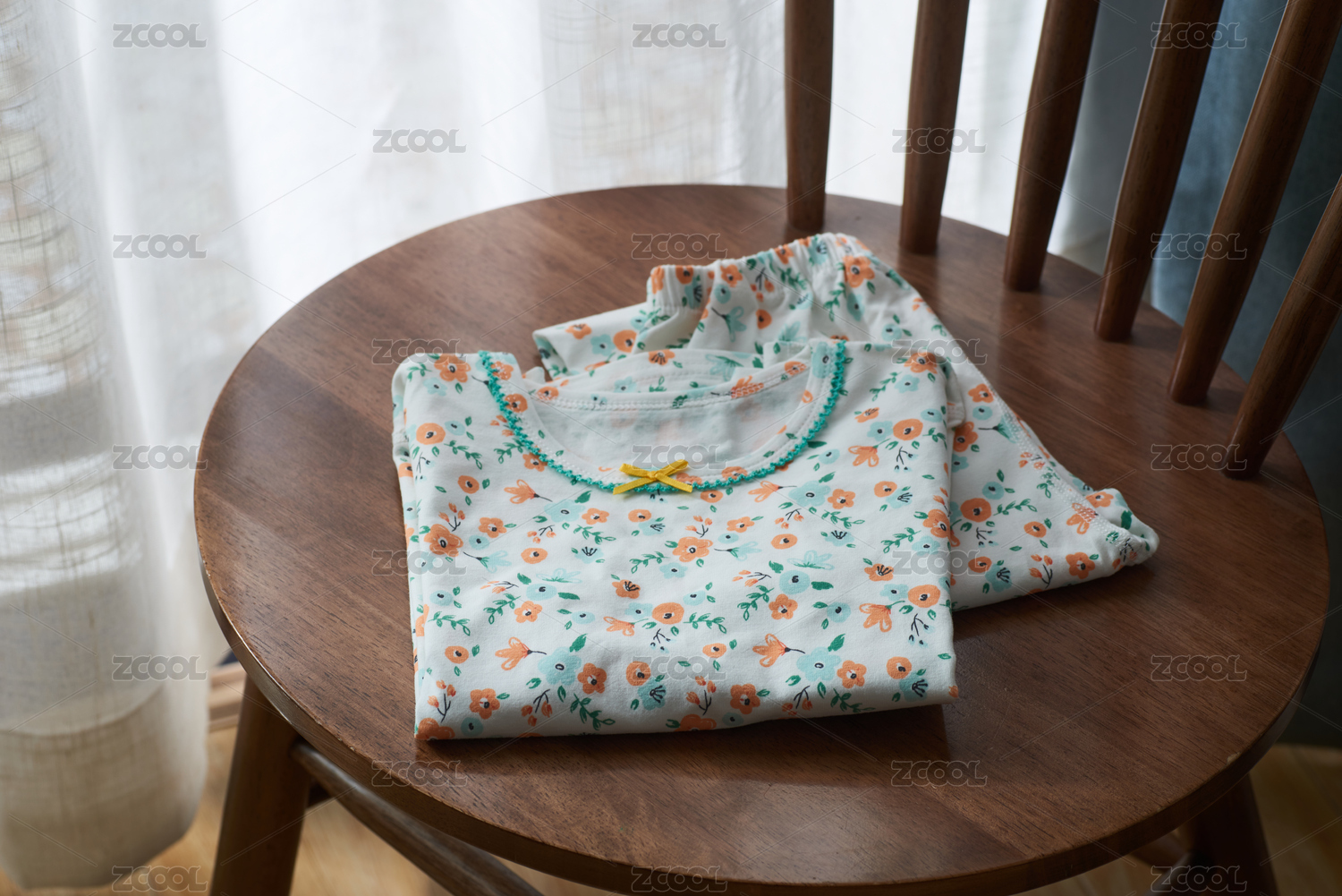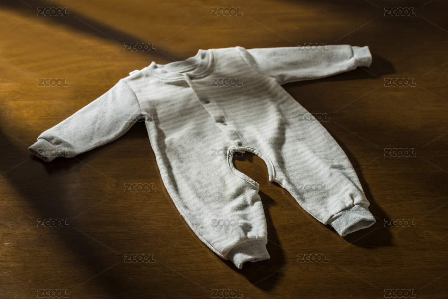 整齐折叠的婴幼儿连体服装和安抚奶嘴