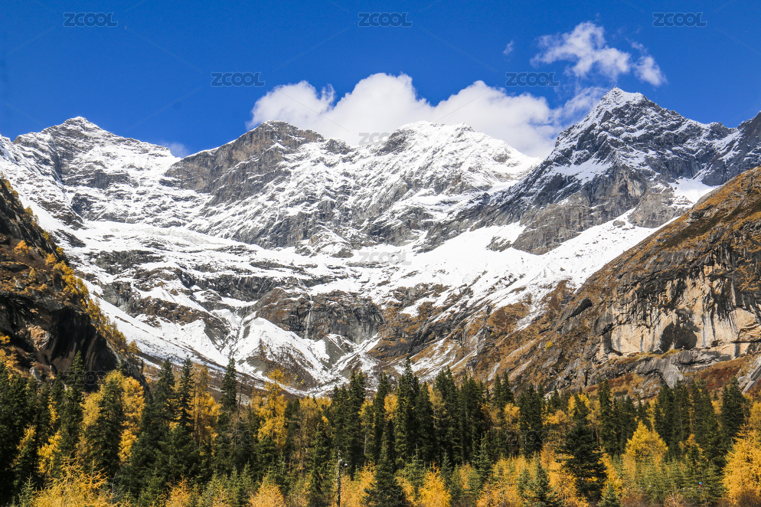四川甘孜藏族自治州四姑娘山双桥沟秋季雪山彩林美景