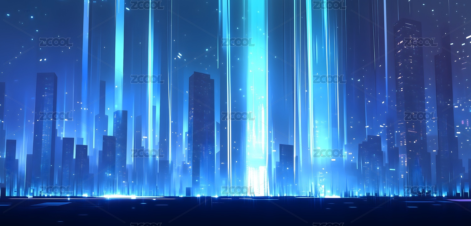 未来,城市,夜景,灯光,反射,水面,星空,建筑,高楼,天际线