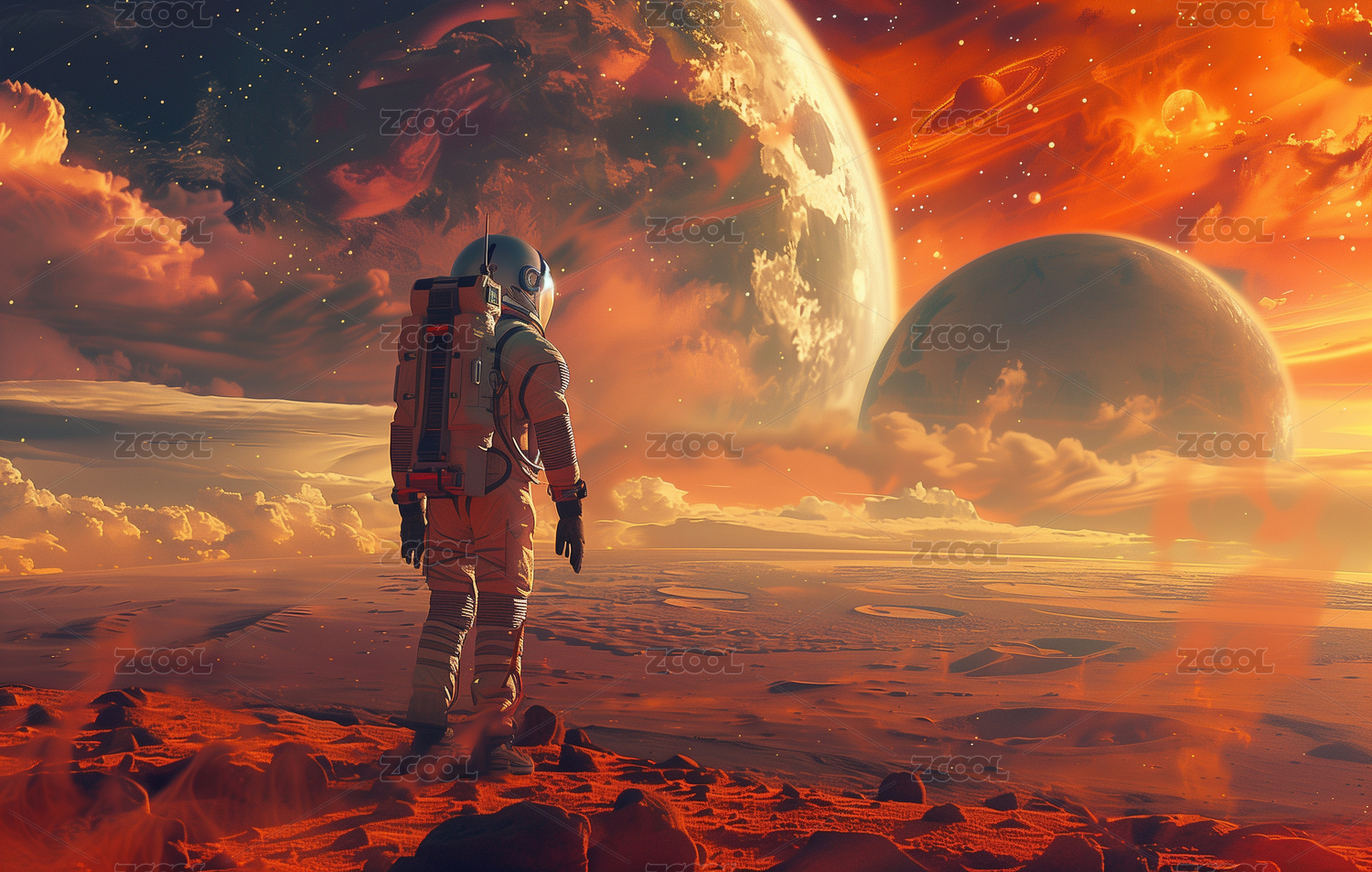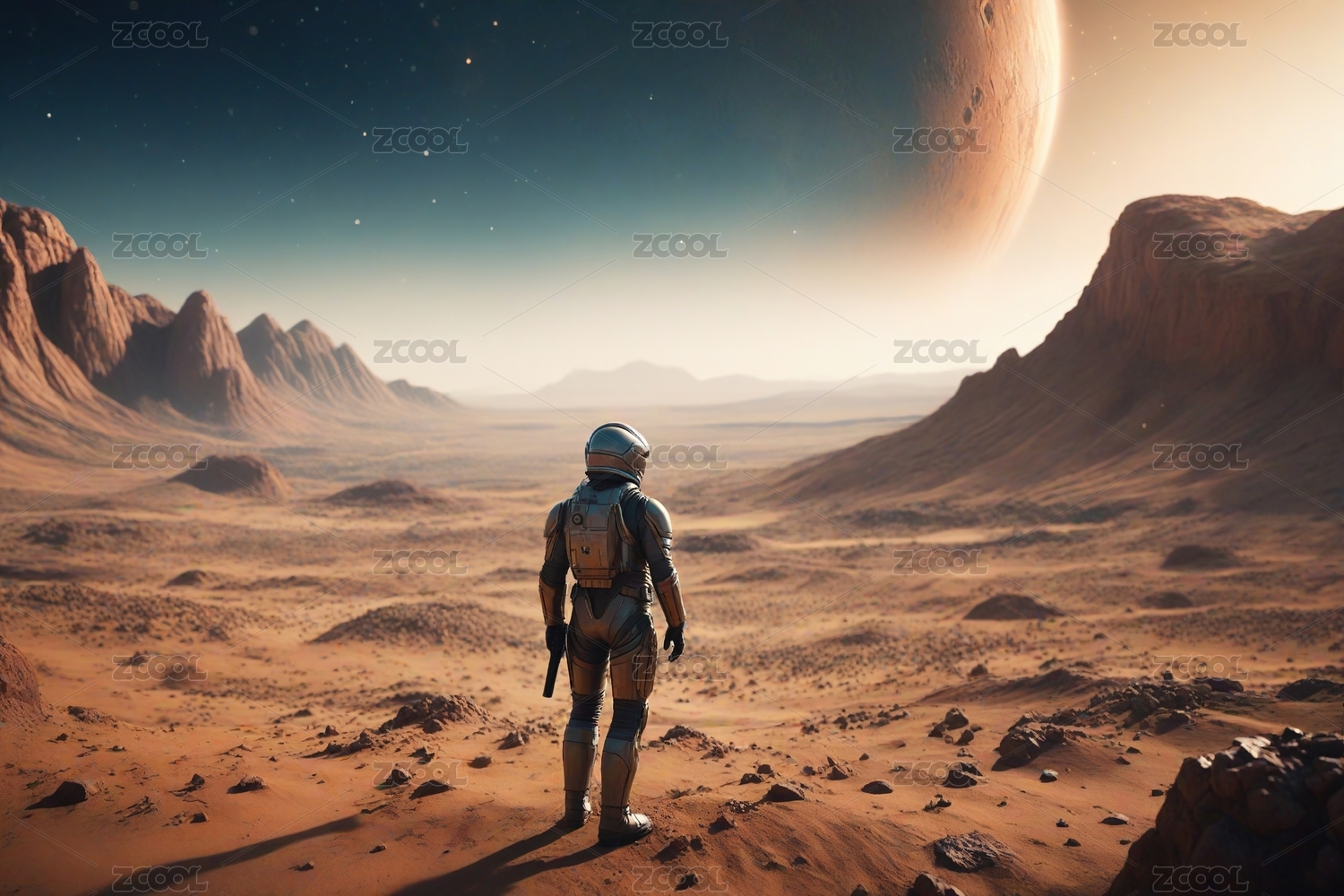 宇航员,星球,太空,背包,荒漠,空旷,宇宙,探索,未知,星辰