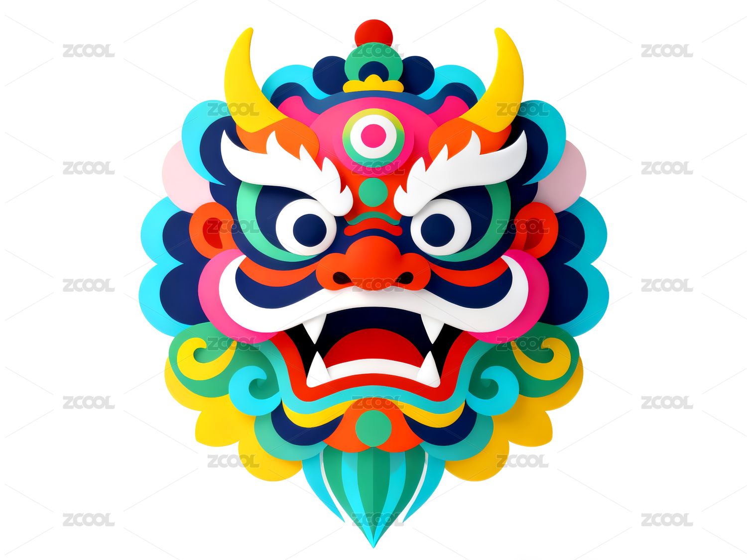 剪纸风彩色龙头