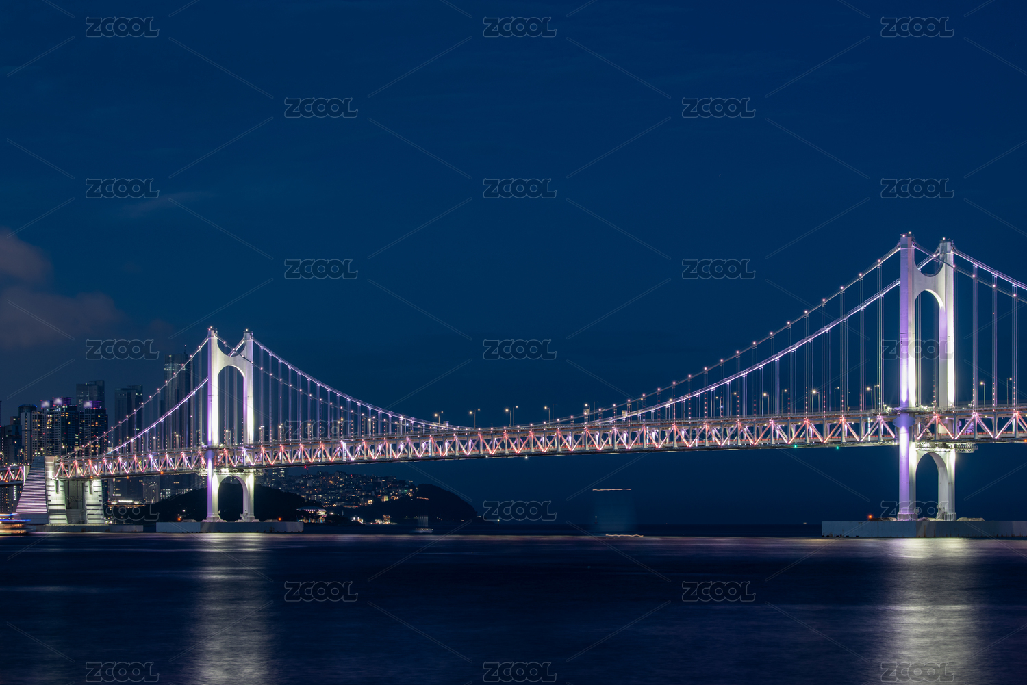 韩国釜山城市天际线大桥夜景
